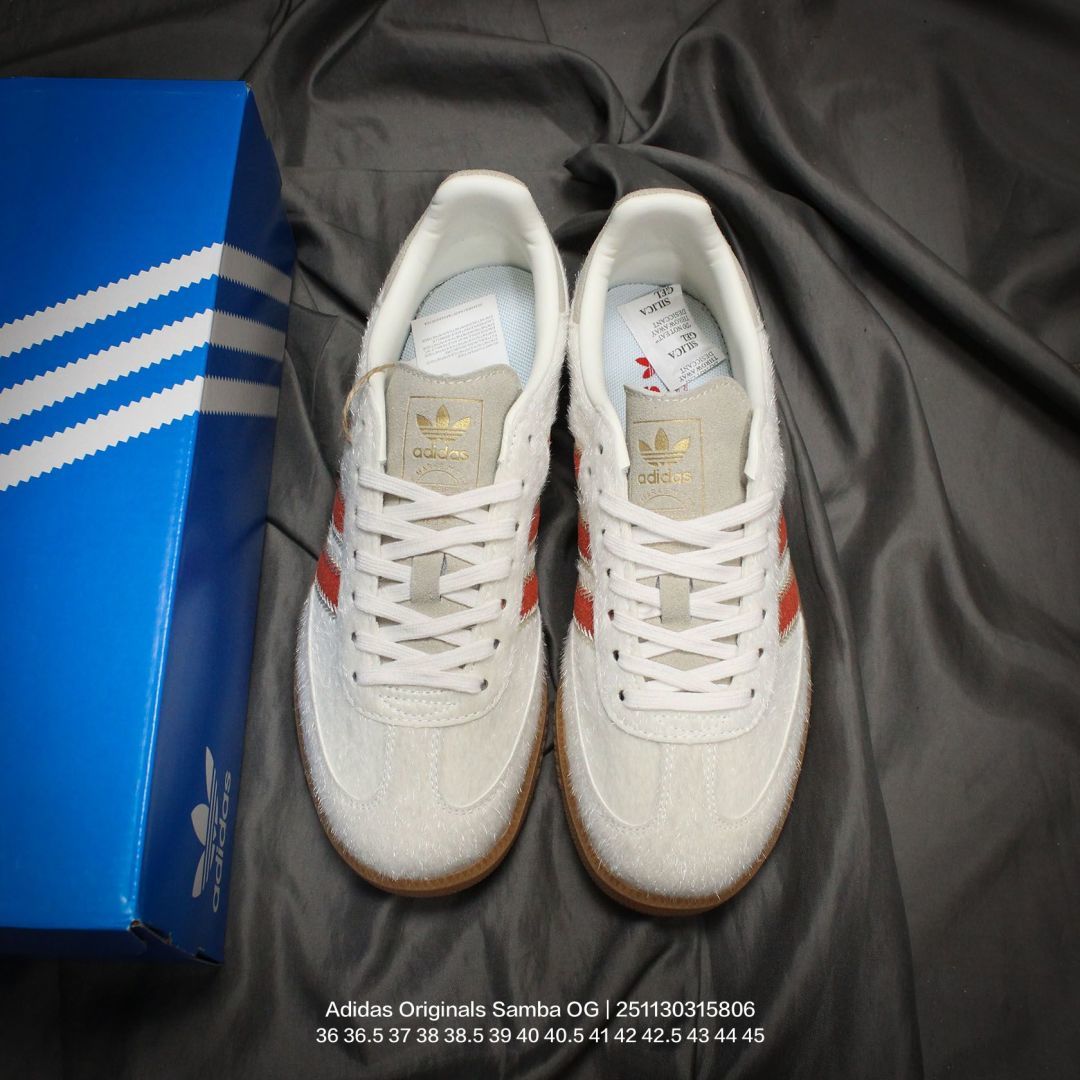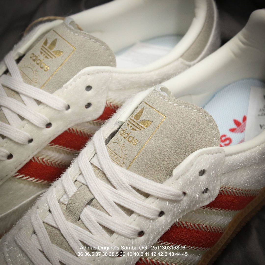 Adidas 阿迪达斯 德训系列 男女鞋真标半码制 原楦原纸版数据开发 采用粒面牛剖革鞋面材质 内环保可再生海玻璃鞋垫 外置RB耐磨防滑橡胶大底带你回味最原始的永远经典 阿迪达斯 三叶草Adidas Originals Samba OG桑巴舞系列绅士德训足球风百搭低帮休闲运动板鞋
