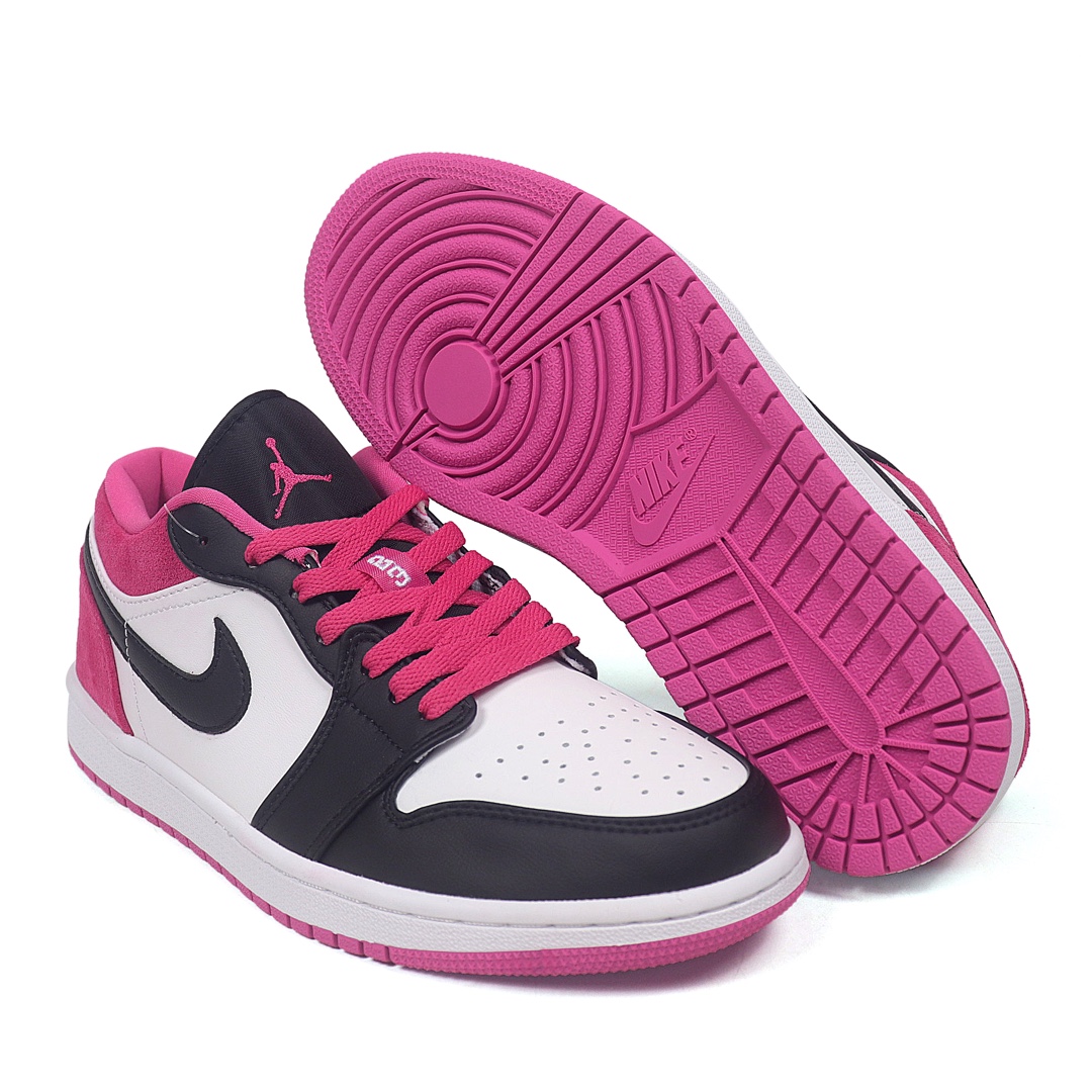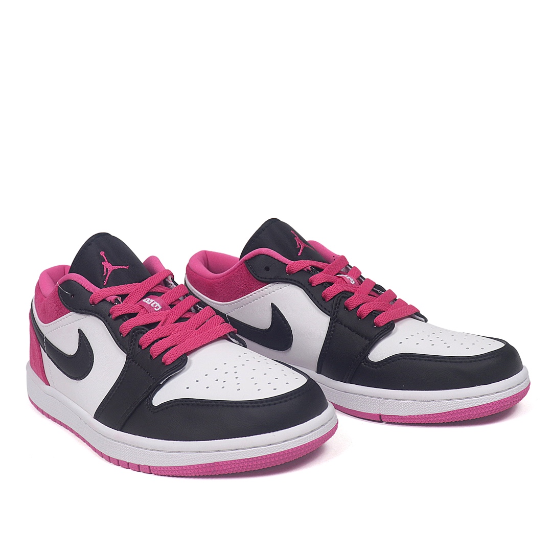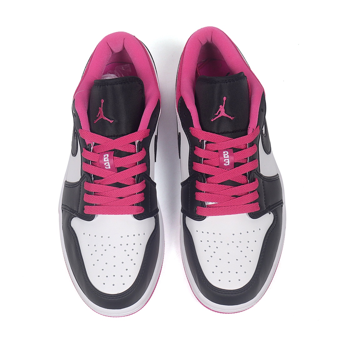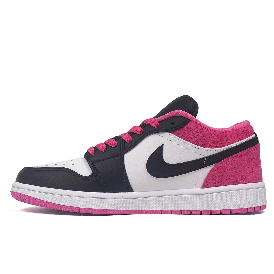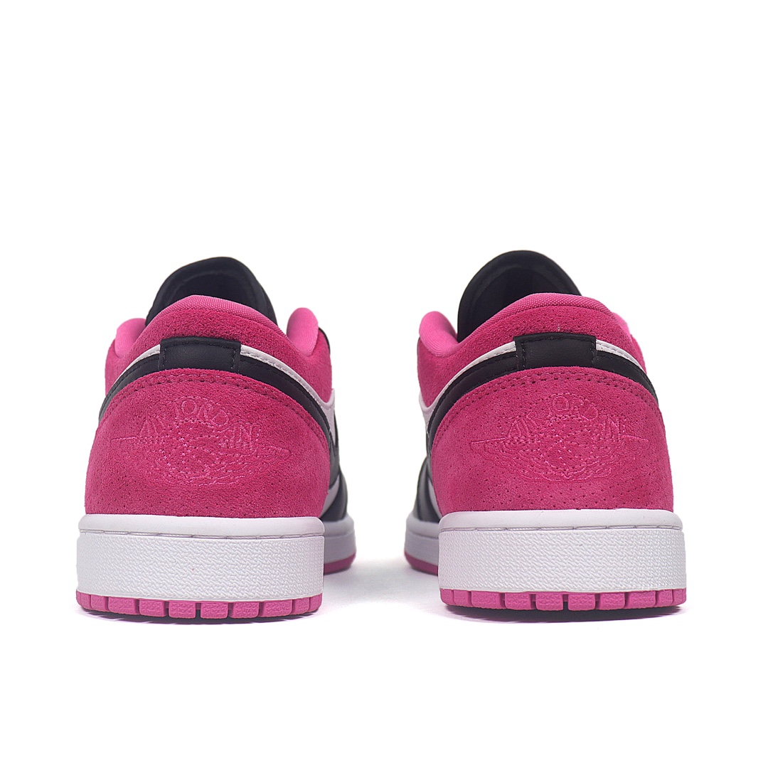 Nike Air Jordan 1 Low Magenta 低帮 激光粉 AJ1 乔丹1代 aj1 乔1 低邦 玫粉 乔丹篮球鞋系列 整体采用白色皮革呈现 框架搭配黑色点缀 内外Swooshk Logo采用黑色 后跟则使用玫粉色反绒皮材质 黑色鞋舌上Jumpman LLogo和鞋带也采用玫粉色点缀 后跟红色Wings Logo刺绣点缀 最后以白色中底搭配粉色外底完善设计