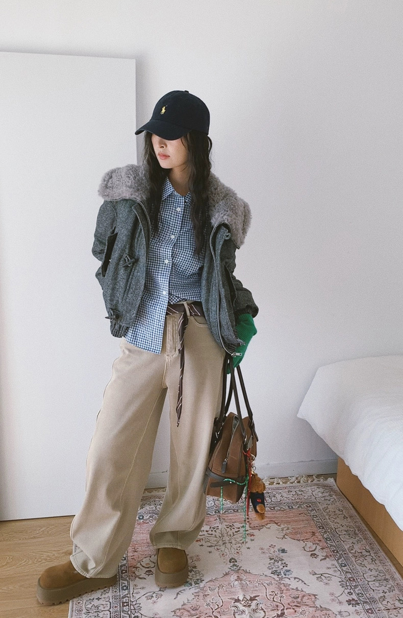最让人惊喜的是它的内里加绒设计 摸起来软乎乎的 贴身穿也不会有扎肤感 保暖性直接拉满 北方的秋冬单穿也wan全没问题 告别秋裤的臃肿 实现 美丽不冻人 加绒的厚度把控得刚刚好 不会让裤型显得臃肿 依旧保持着弯刀裤的利落线条 这也是它区别于普通加绒牛仔裤的关键