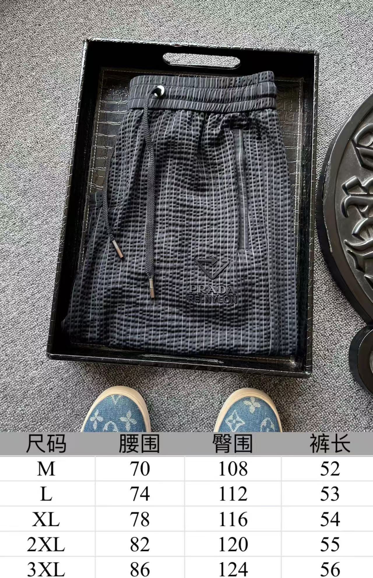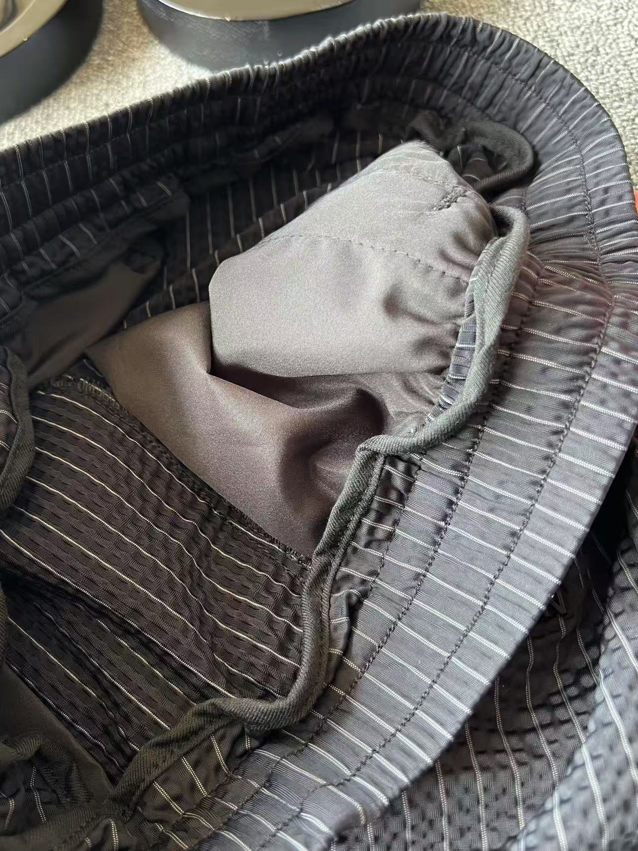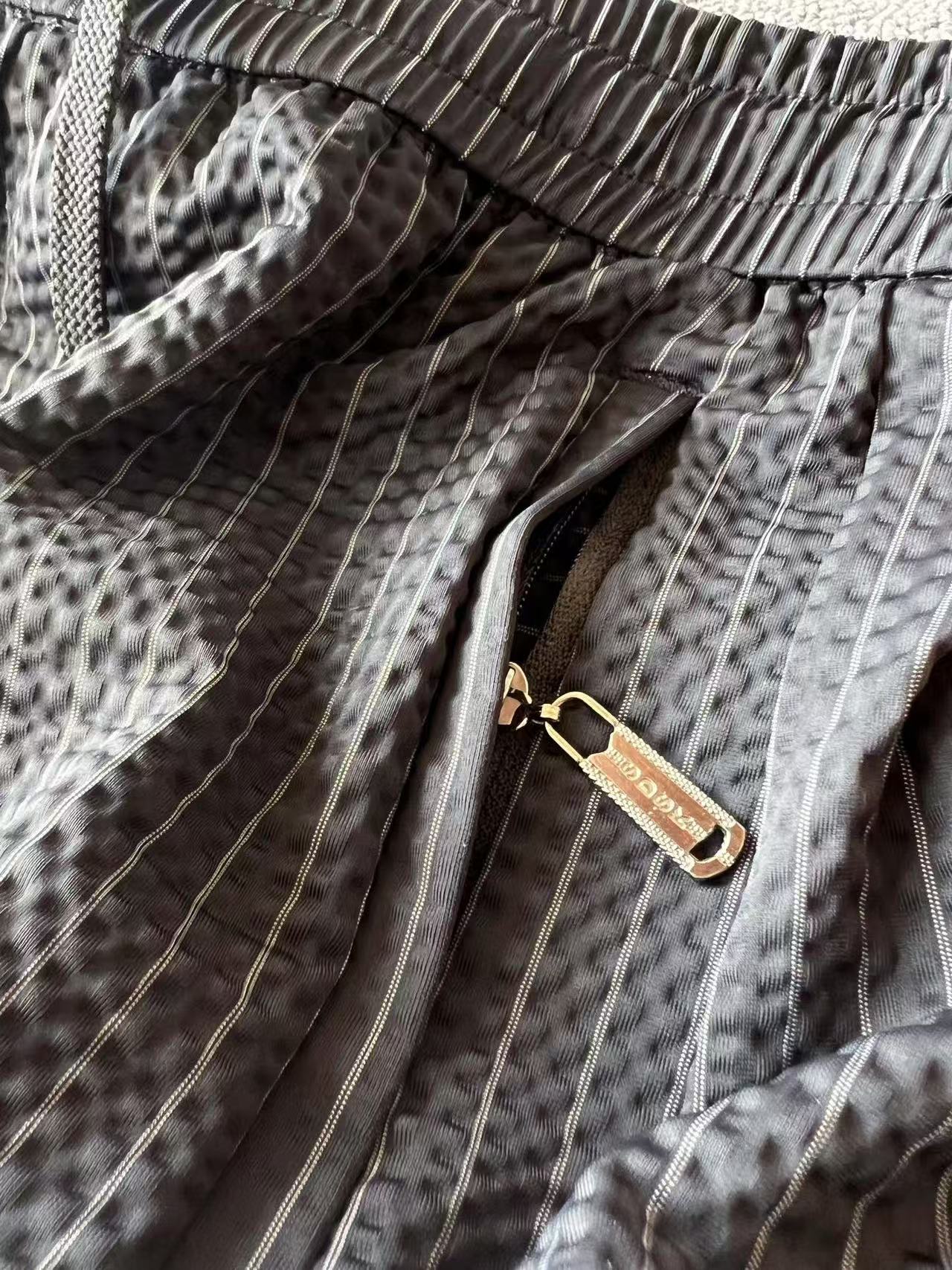 细节细节再细节 Prada家商场新品条纹五分裤 设计师主打高端旗舰系列而量产 高级灰竖条纹配合鱼骨纹3D肌理高级感拉满 裤前3D立体三角标Prada液态硅胶小标 十分简约精致 金属抽绳孔以及双侧带暗拉链设计 裤后内嵌式口袋增强立体感的同时大大增强实用性以及随身携带手机安全性 内里天花板级包边包条精湛做工