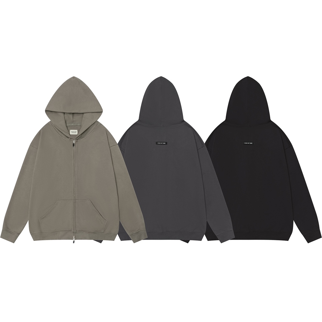 欧美高街Lisa jennie同款上衣fog拉链连帽卫衣男女上帝灰宽松外套 双拉链特别设计 百搭超酷 炭灰 铁灰 黑色 3色 S一XL
