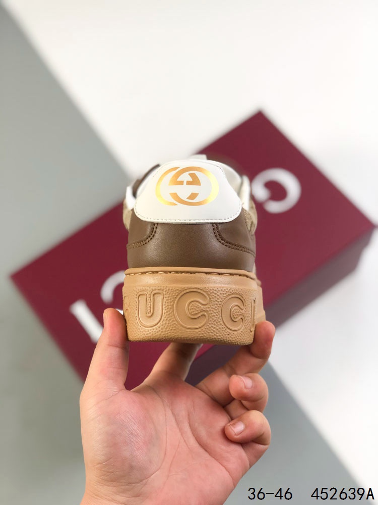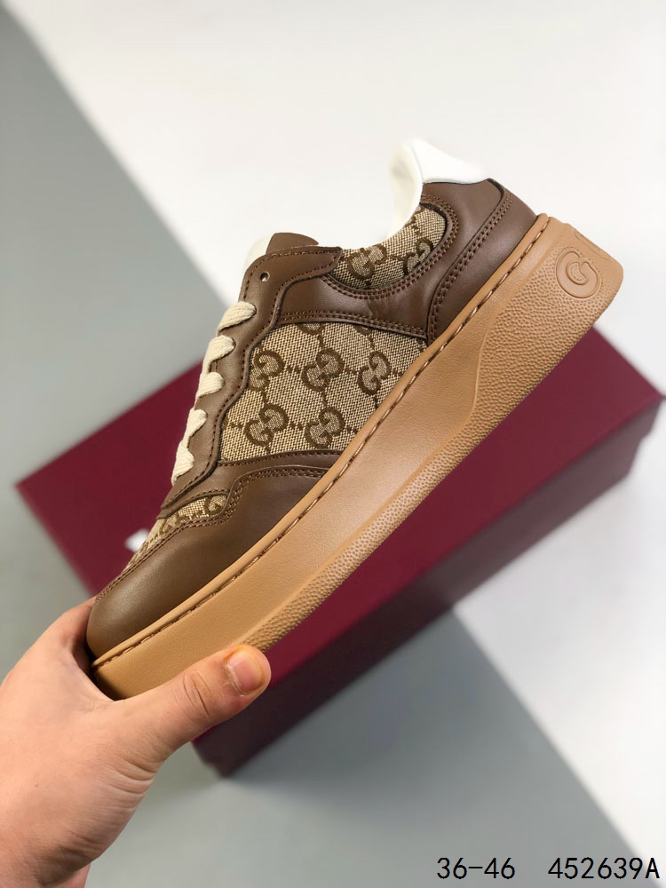 GUCCI 古驰 百搭休闲运动板鞋 明星同款 小红书爆款老花 小白鞋 厚底增高男女士运动鞋 皮革鞋面真标 经典高奢品牌GUCCI古驰 复古松糕跟休闲运动鞋
