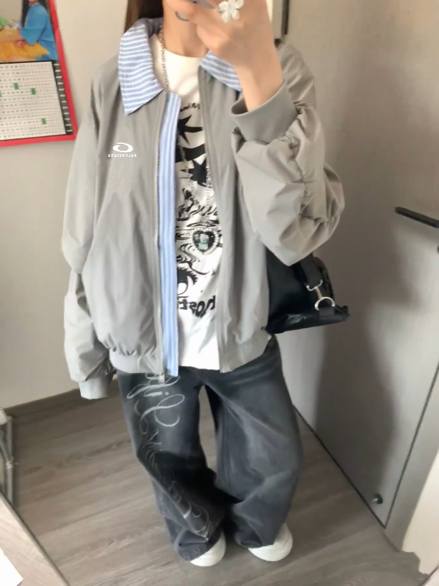 BALENCIAGA巴黎世家25秋季字母刺绣假两件翻领棒球服夹克外套