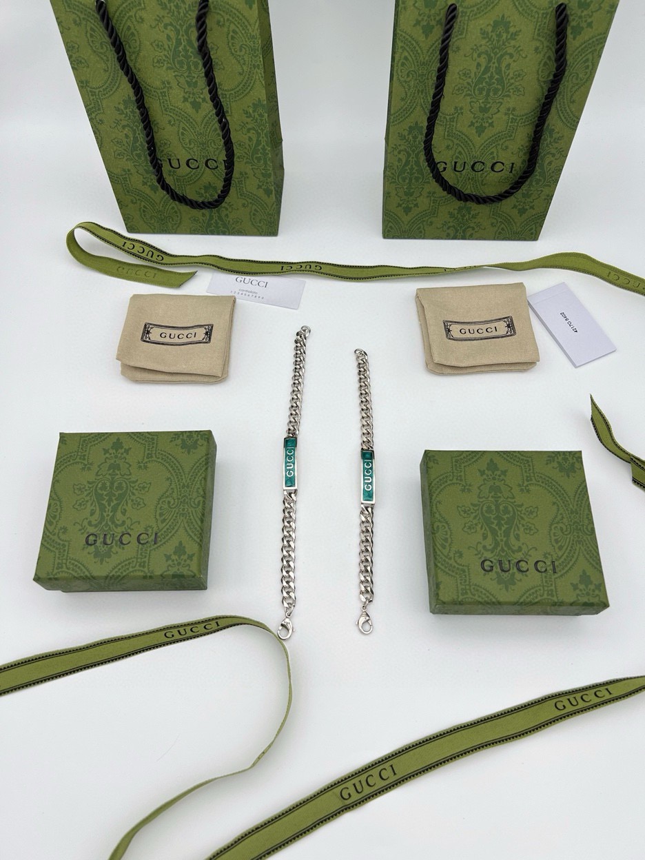 这款泰银手链匠心融入Gucci标识和宝石绿色珐琅细节 鲜艳明快的色调与大气粗犷的马衔索链交相映衬 于现代感中流露出优雅气息