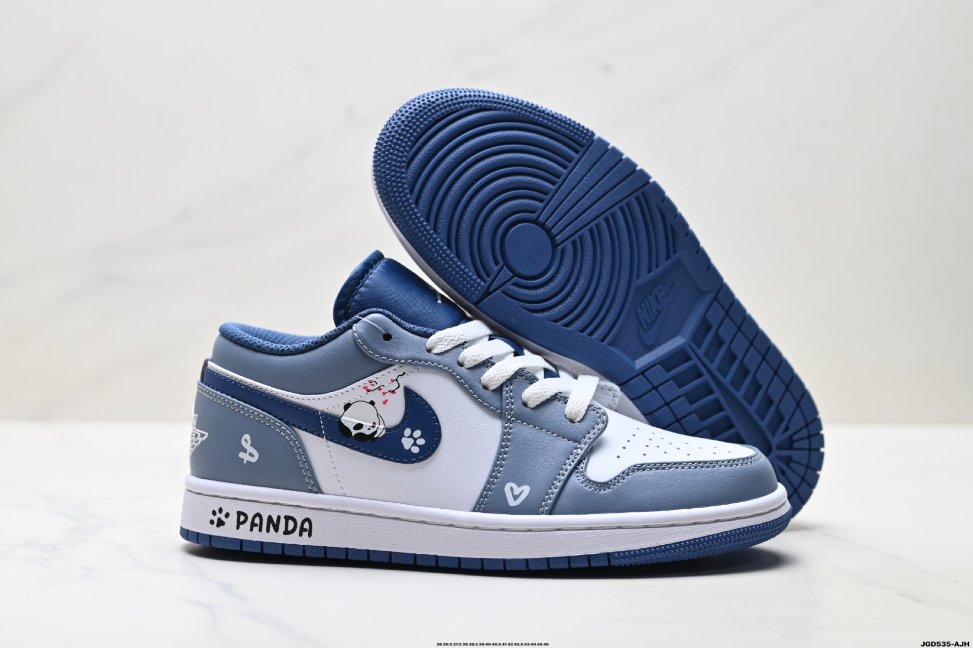 公司级定制球鞋Jordan Air Jordan 1慵懒大熊猫手绘解构低帮休闲篮球鞋