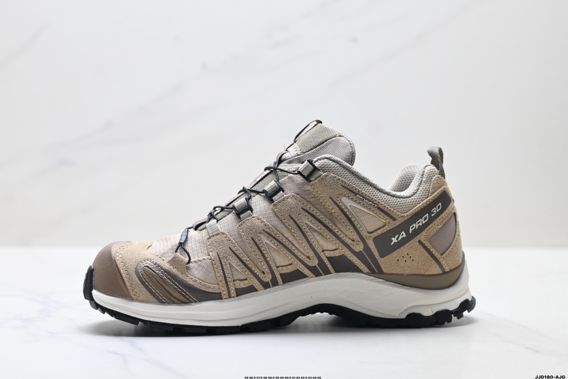 公司级Salomon萨洛蒙 XA PRO 3D户外越野跑鞋 鞋面采用SENSIFIT贴合技术 全方位贴合包裹脚型 鞋跟部鞋底牵引设计 提供强大的抓地性能 更适应野外崎岖不平的道路 其3D ADVANCED CHASSIS底盘 材料轻量大化 钉齿设计更具稳定性 防护性 鞋底易磨损区运用CONTAGRIP高耐磨材料 应对城市硬质路面长距离跑考验