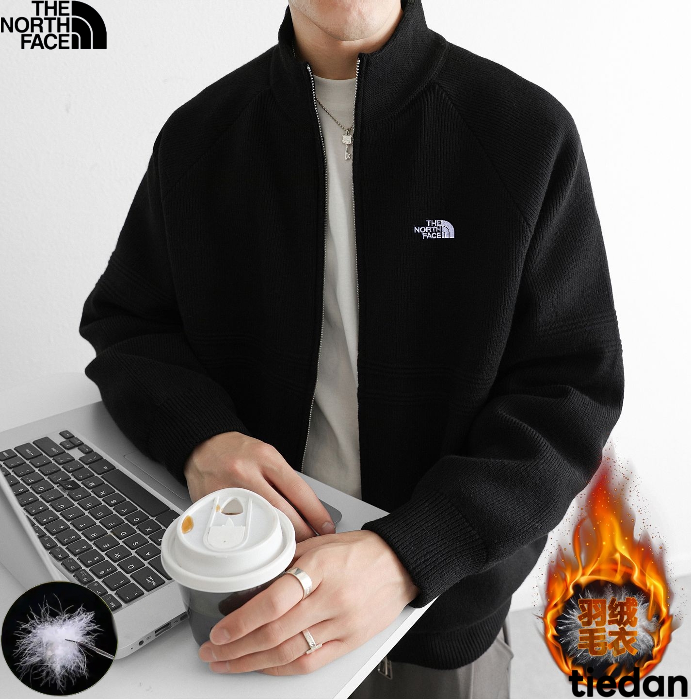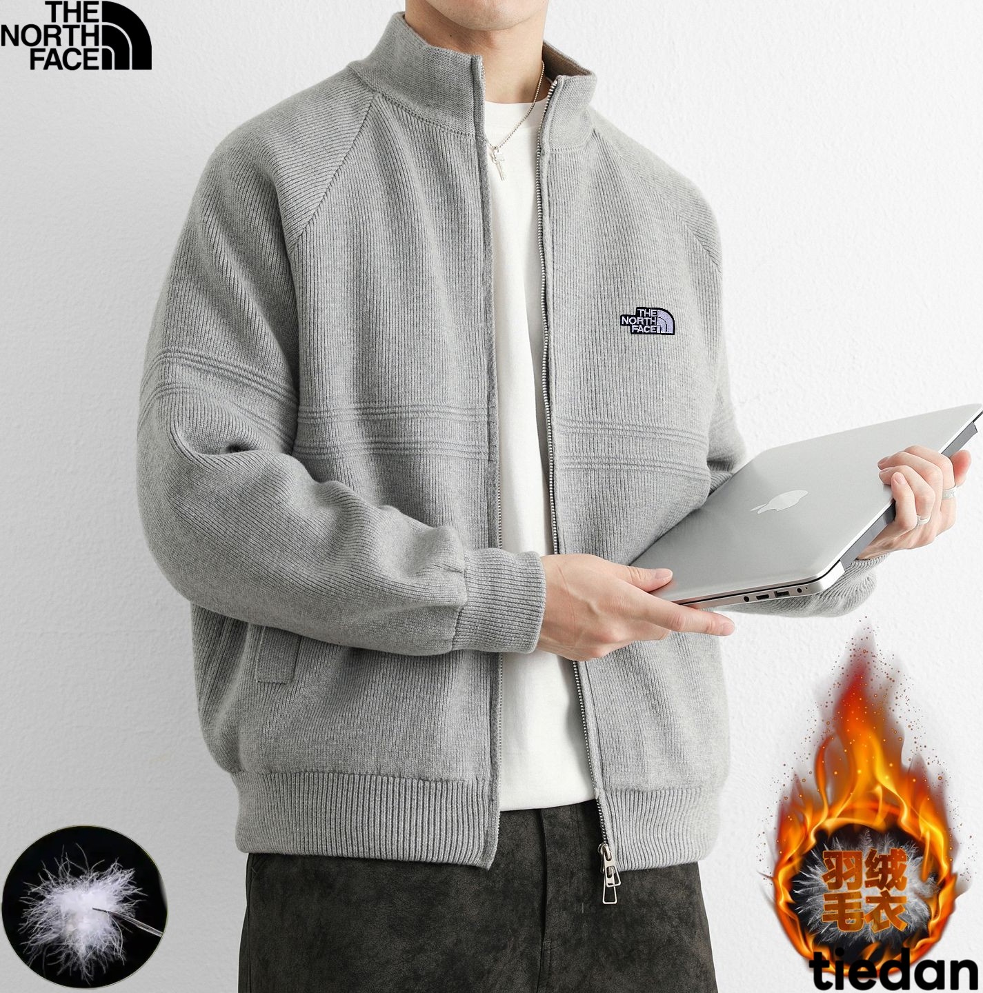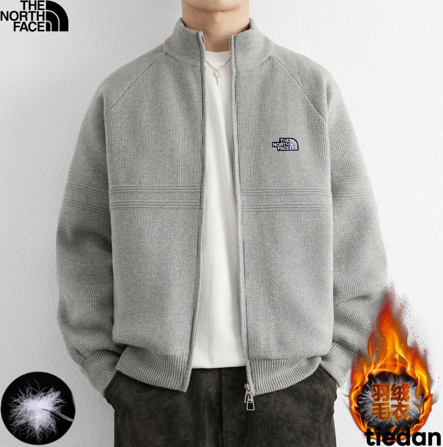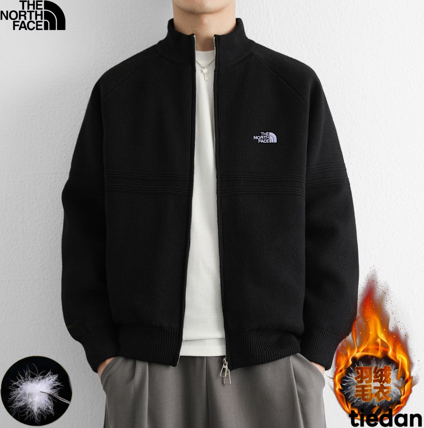北面The North Face冬季新款 男女同款立领针织羽绒内胆毛衣 羽绒针织衫上衣外套