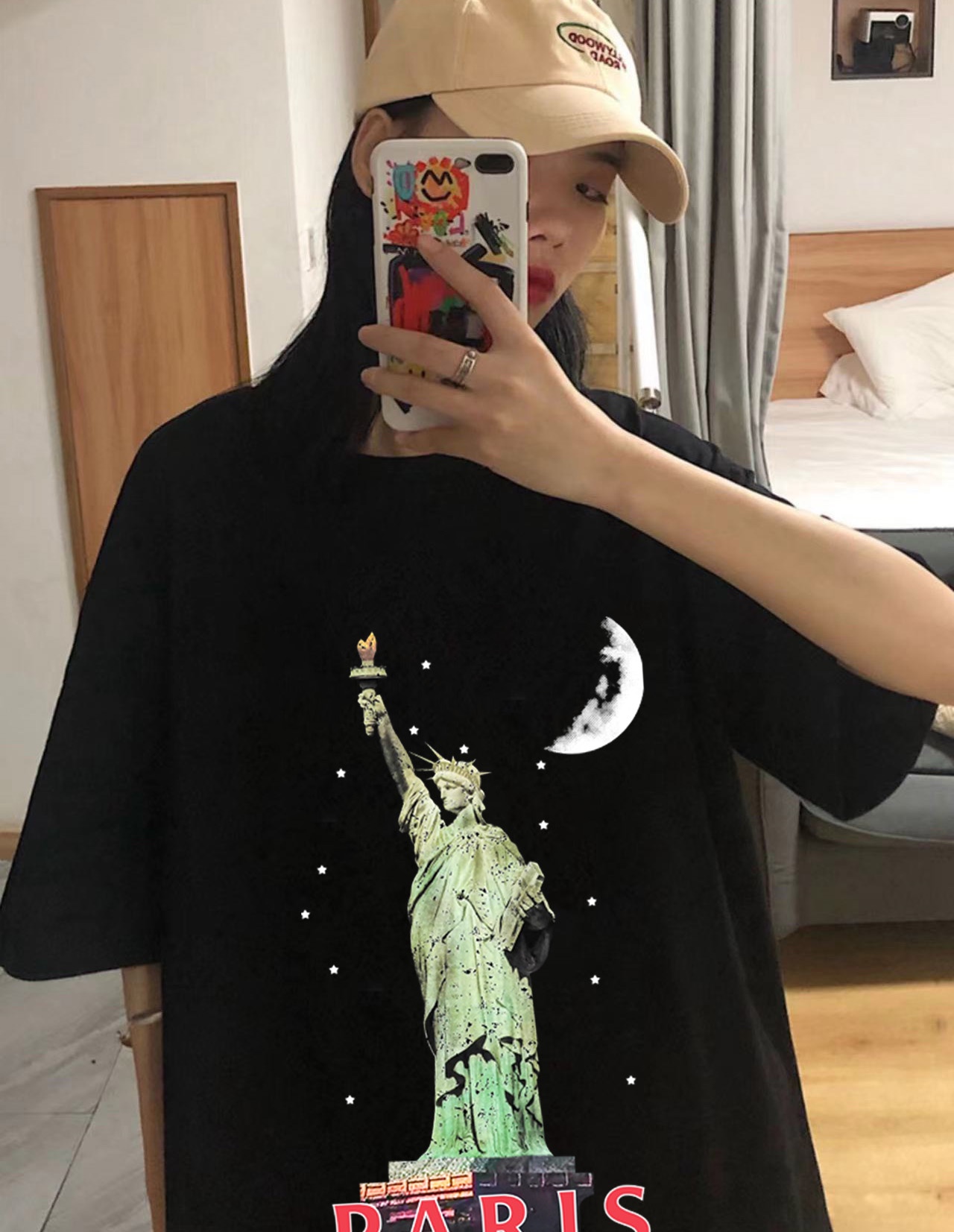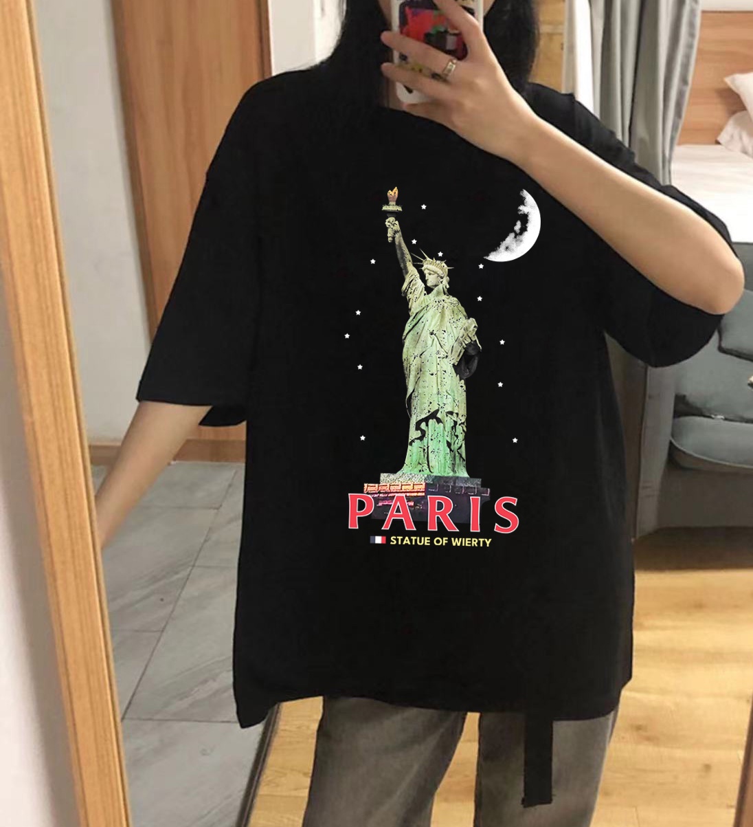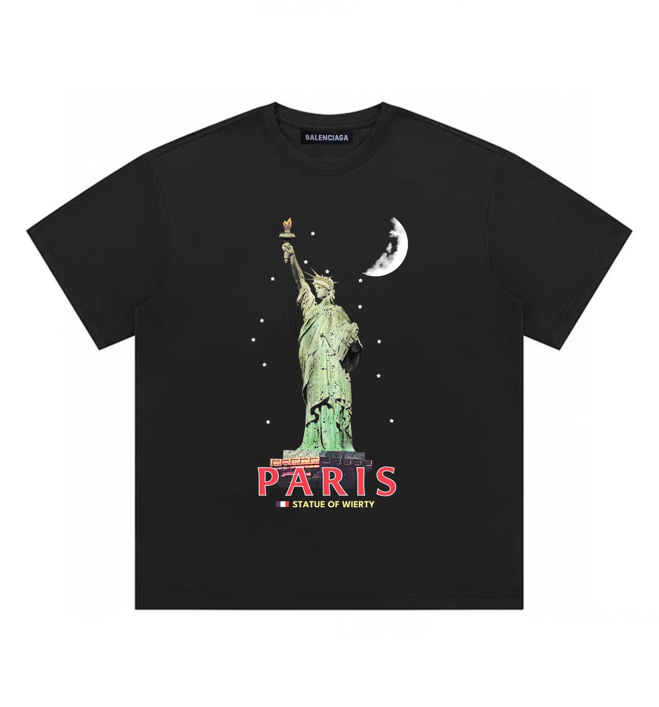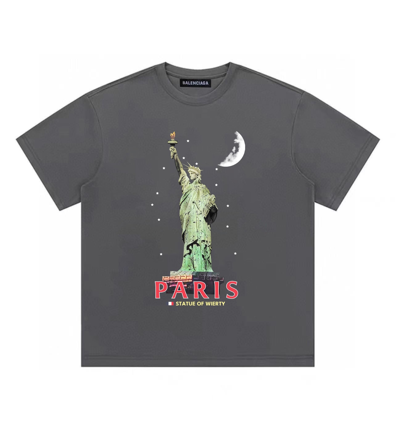 Balenciaga巴黎世家自由女神像圆领短袖半袖T恤 面料采用260克纯棉双纱食毛面料 双线二本针压线 久洗不变形 原版定制三标 高端进口印花 随意水洗 情侣可穿 男女同款 黑色 深灰色 M XL M 衣长70肩宽51胸围112 L 衣长72 肩宽54胸围116 XL衣长74肩宽57胸围120