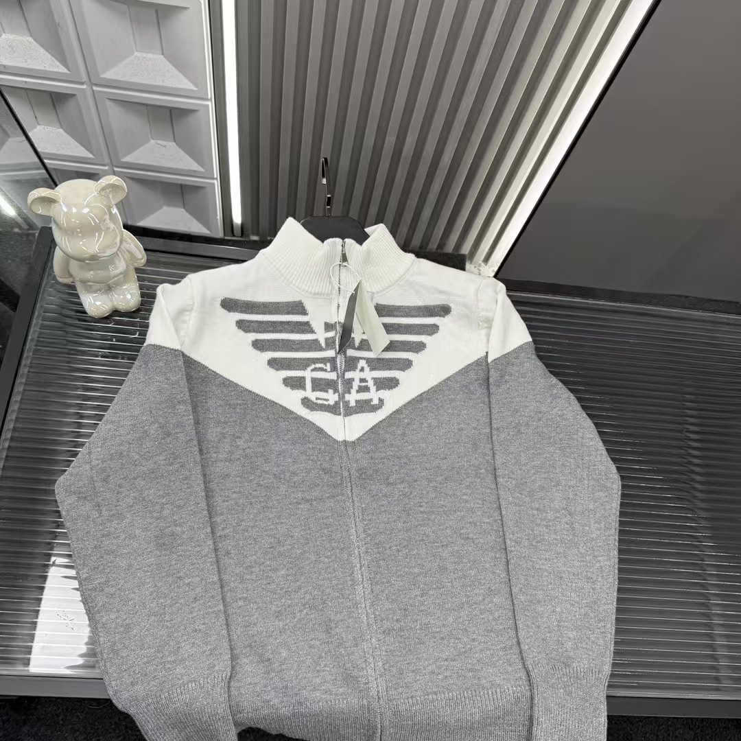 秋冬爆款热销款推荐Ea7阿玛尼开衫毛衣 拼接色图案 三标齐全官网一致 放大看细节原相机实物拍摄 颜色 灰色 尺码 L 4xl L 80 105斤 XL 105 120斤 2XL 120 140斤 3XL 140 160斤 4XL 160 180斤