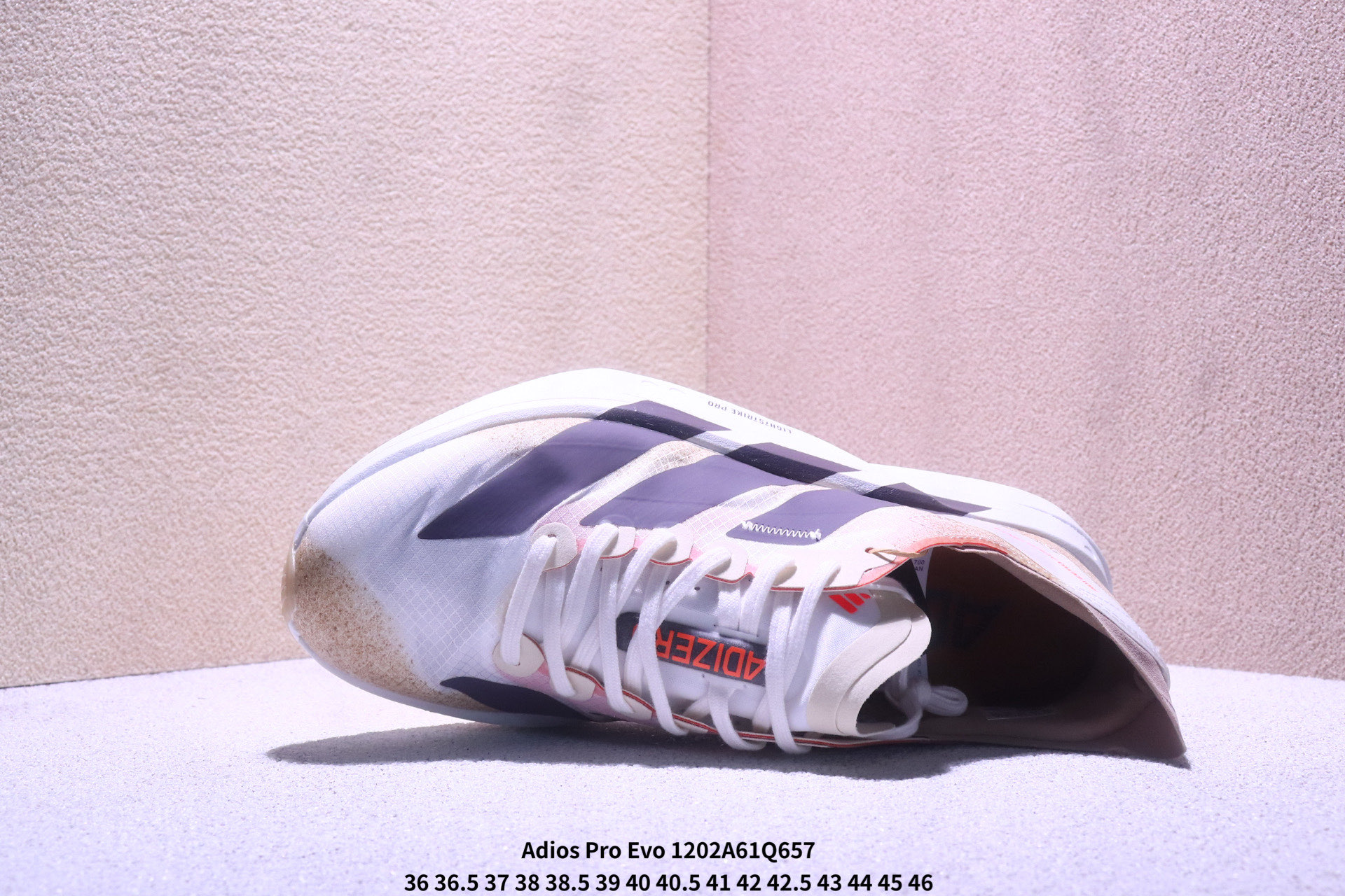 公司级版 男女鞋真标半码制 升级原楦原纸版开发 采用轻质单向弹性梭织鞋面材质 中底搭载Lightstrike高密度发泡 前掌单块Lightstrike Pro避震科技 外搭马牌橡胶橡胶防滑底片全新极简设计语言 阿迪达斯Adidas Adizero Adios Pro Evo 4 Ekiden Pack 零度平安进化版4系列低帮轻便透气竞速休闲运动慢跑鞋