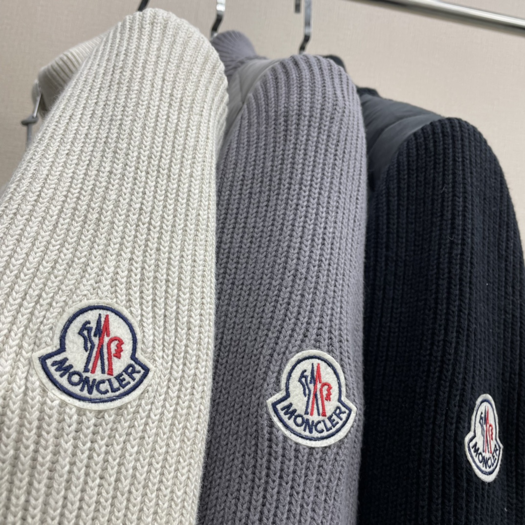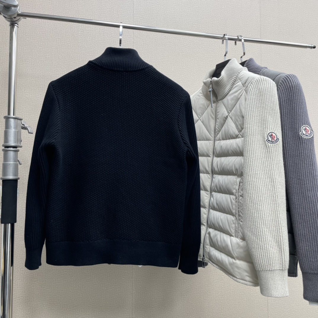 全网独家 蒙口24秋冬新款 男女针织拼接羽绒服拉链开衫外套 太赞啦 观网门店同步 前B1336片拼接羽绒服 内里填充90 白鸭绒 男女同款 上身太好看了 代工厂出品 品质赞 客五金面辅料 工艺复杂 送人自留都ok 喜欢的别错过