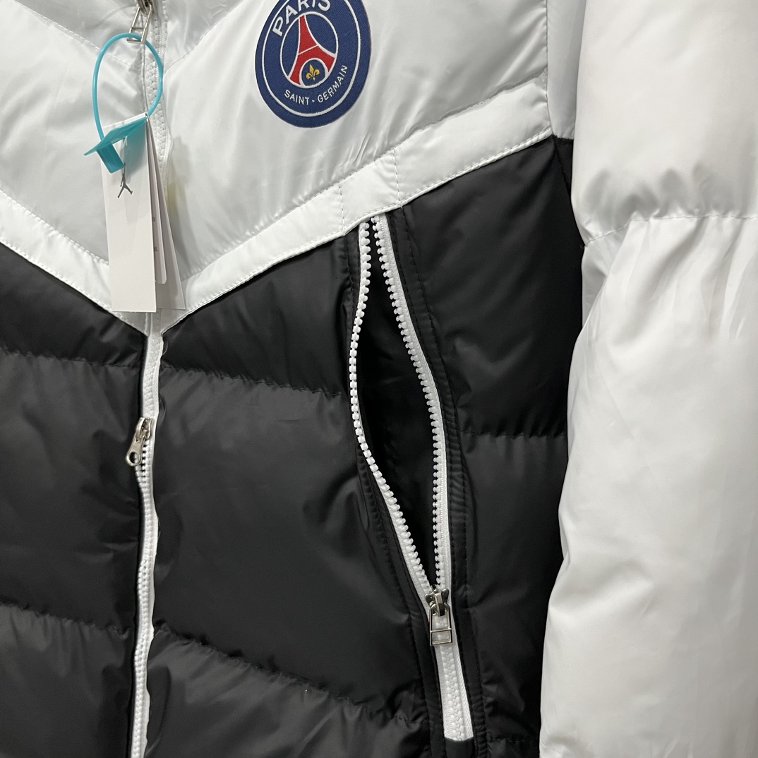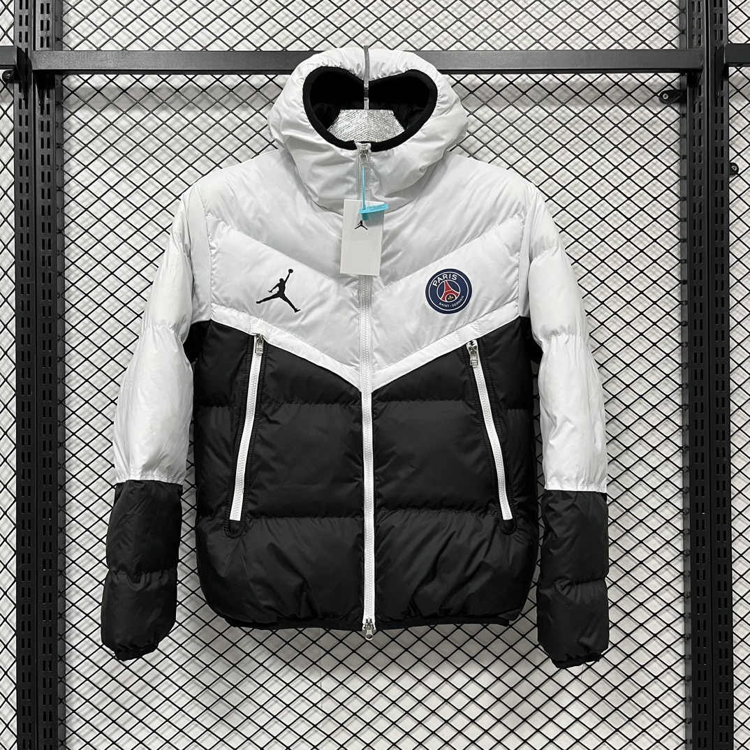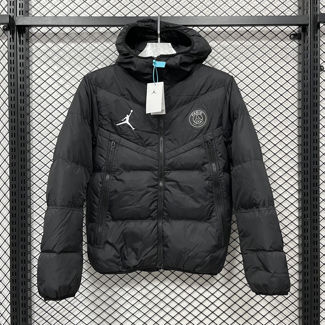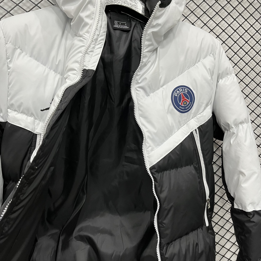 售后不停 乔丹Aj联名 Jordan M J PSG PUFFER JKT 巴黎圣日耳曼 Logo印花徽章连帽宽松面包棉服 冬季 男款 黑色 白色S 2XL