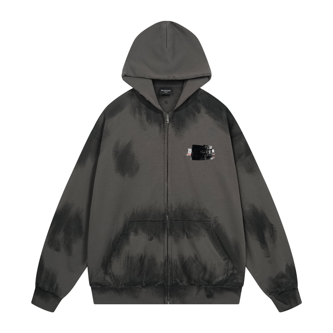 细节图 顶级版本 官网品质 BALENCI GA 巴黎 经典款 可乐刺绣手绘涂鸦黑胶带开衫连帽卫衣