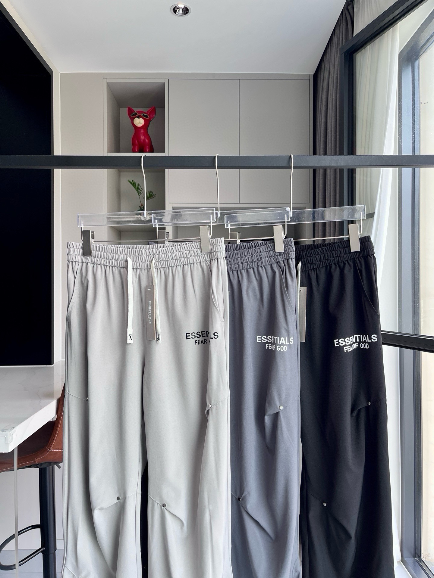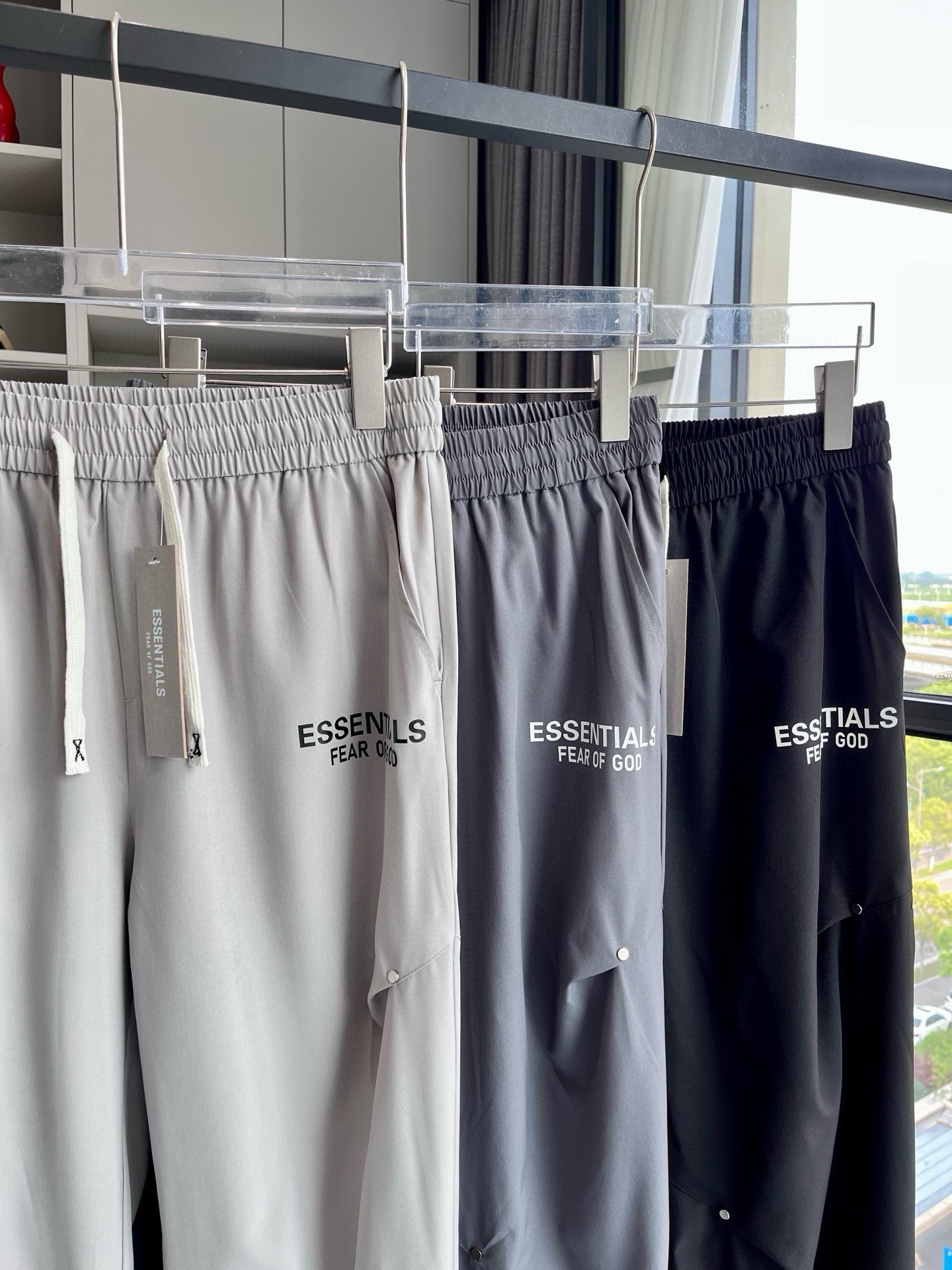 FOG ESSENTIALS FEAR OF GOD 夏季褶皱铆钉休闲直筒裤 版型超正的百搭神裤 上身巨好看 搭配经典logo印花设计 经典百搭 面料舒适亲肤 百搭出行休闲日常运动必备 男女同款可搭情侣哦