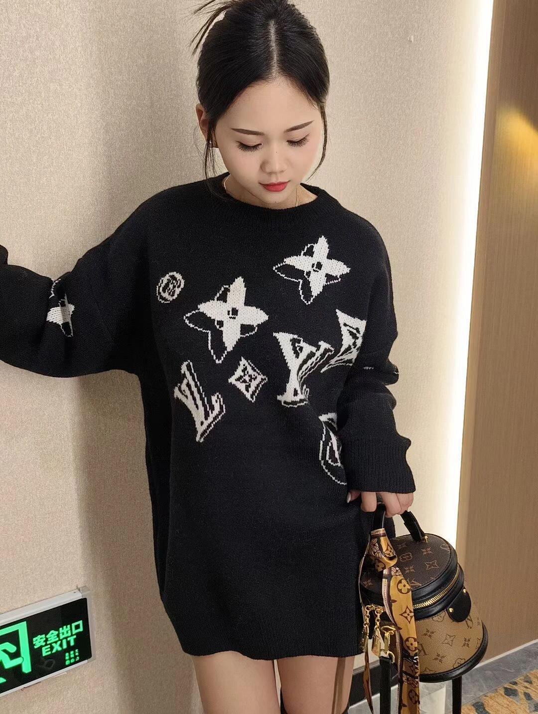 路易威登 Louis vuitton 前后草写提花满印休闲圆领毛衣经典款