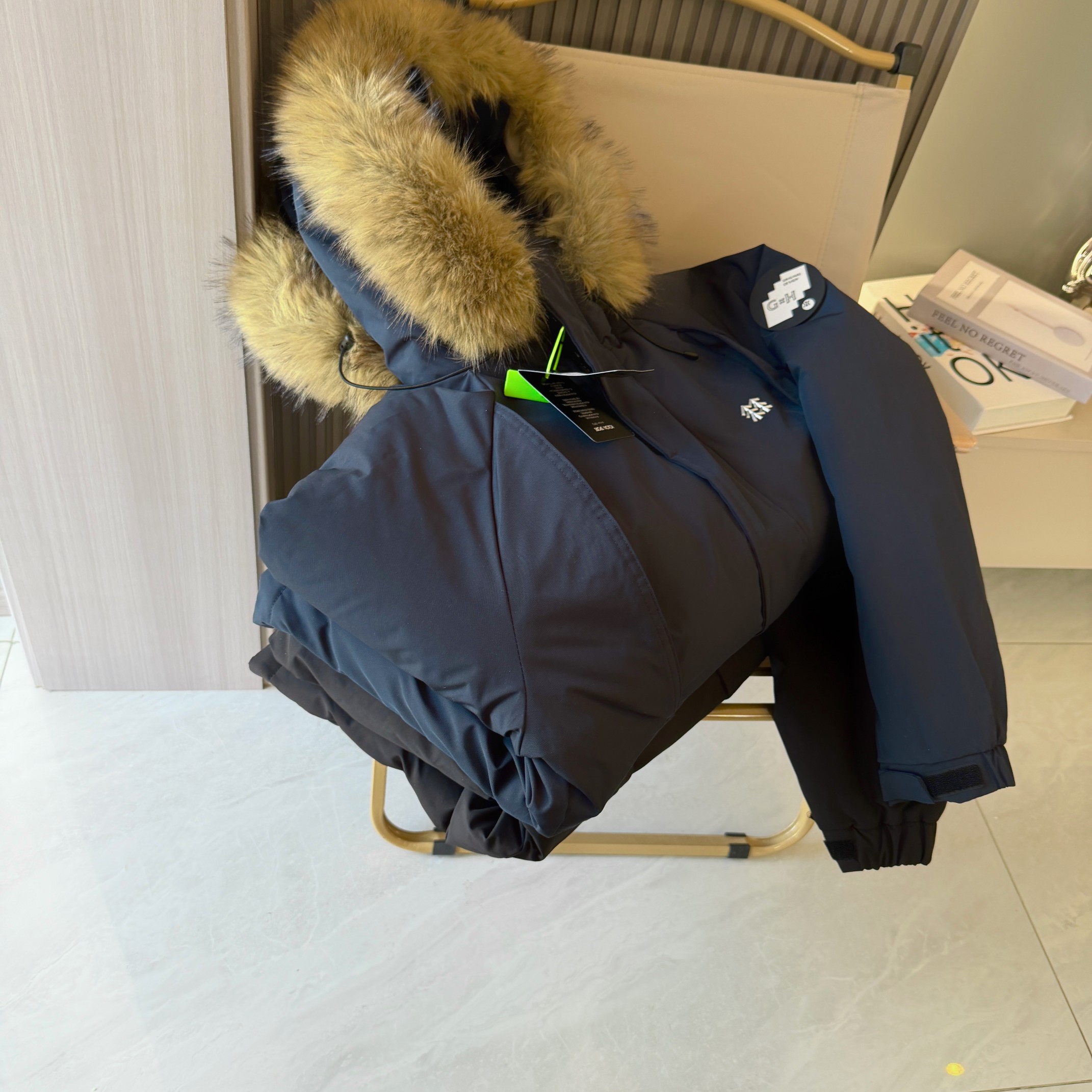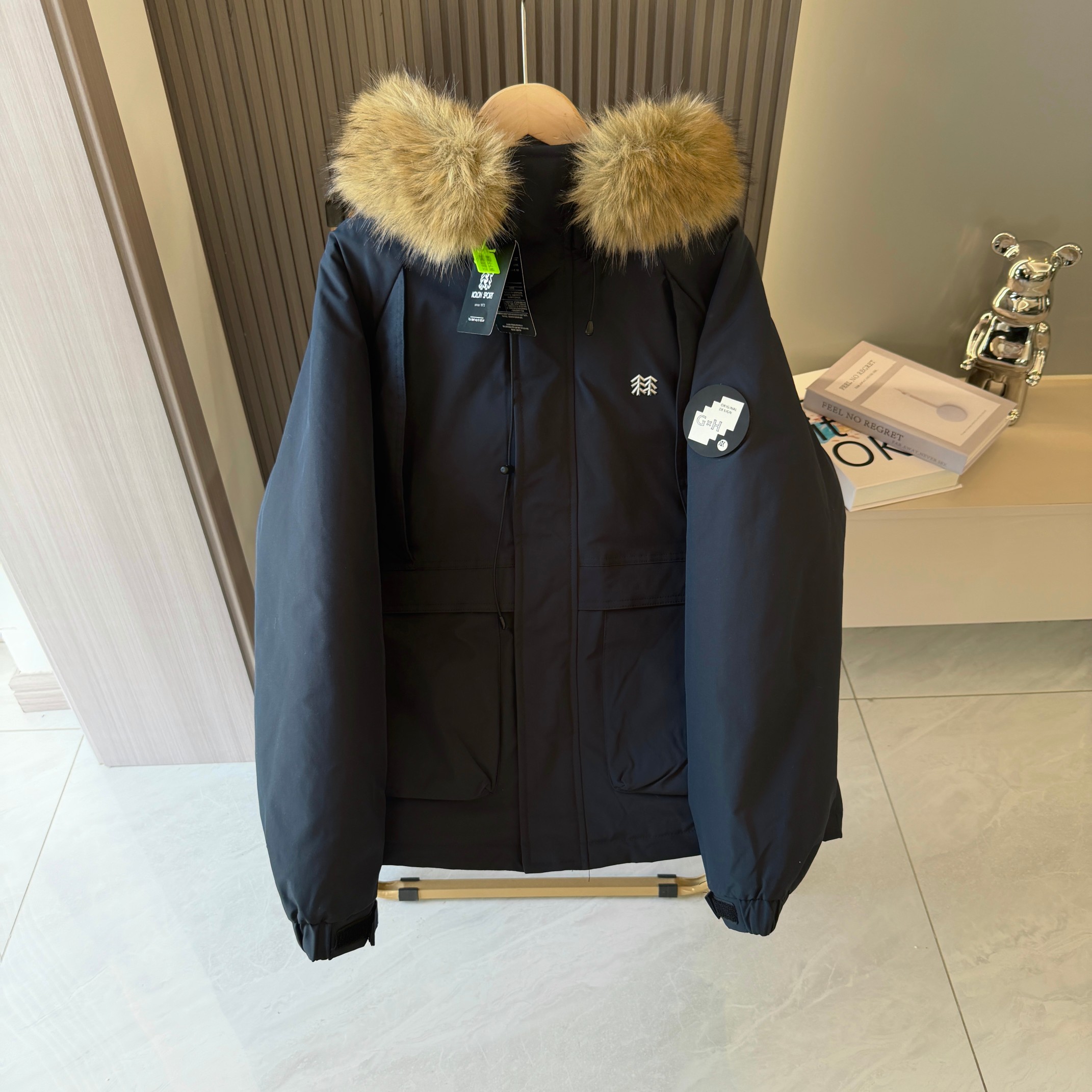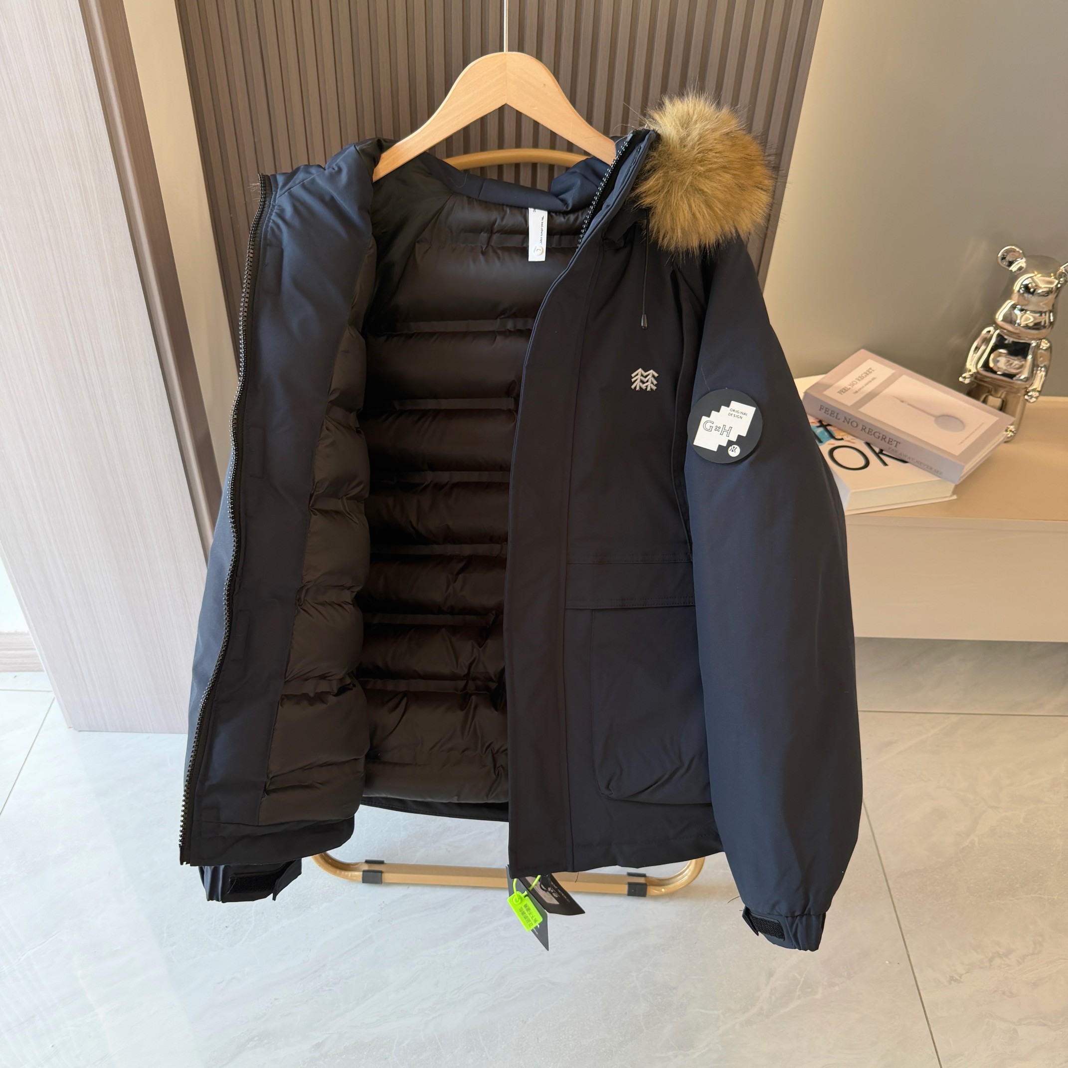 易打理不褪色 给一个健康舒适的穿着体验 可脱御帽毛设计 简约利落 由里到外细节严格把控 严防寒风入侵提高防寒保暖性 内里采用高克重丝棉超级保暖厚实 不臃肿 胸前经典Logo时尚 面料采用最新型面料 厚实 耐穿 耐磨 总之 值得自留的一件棉衣
