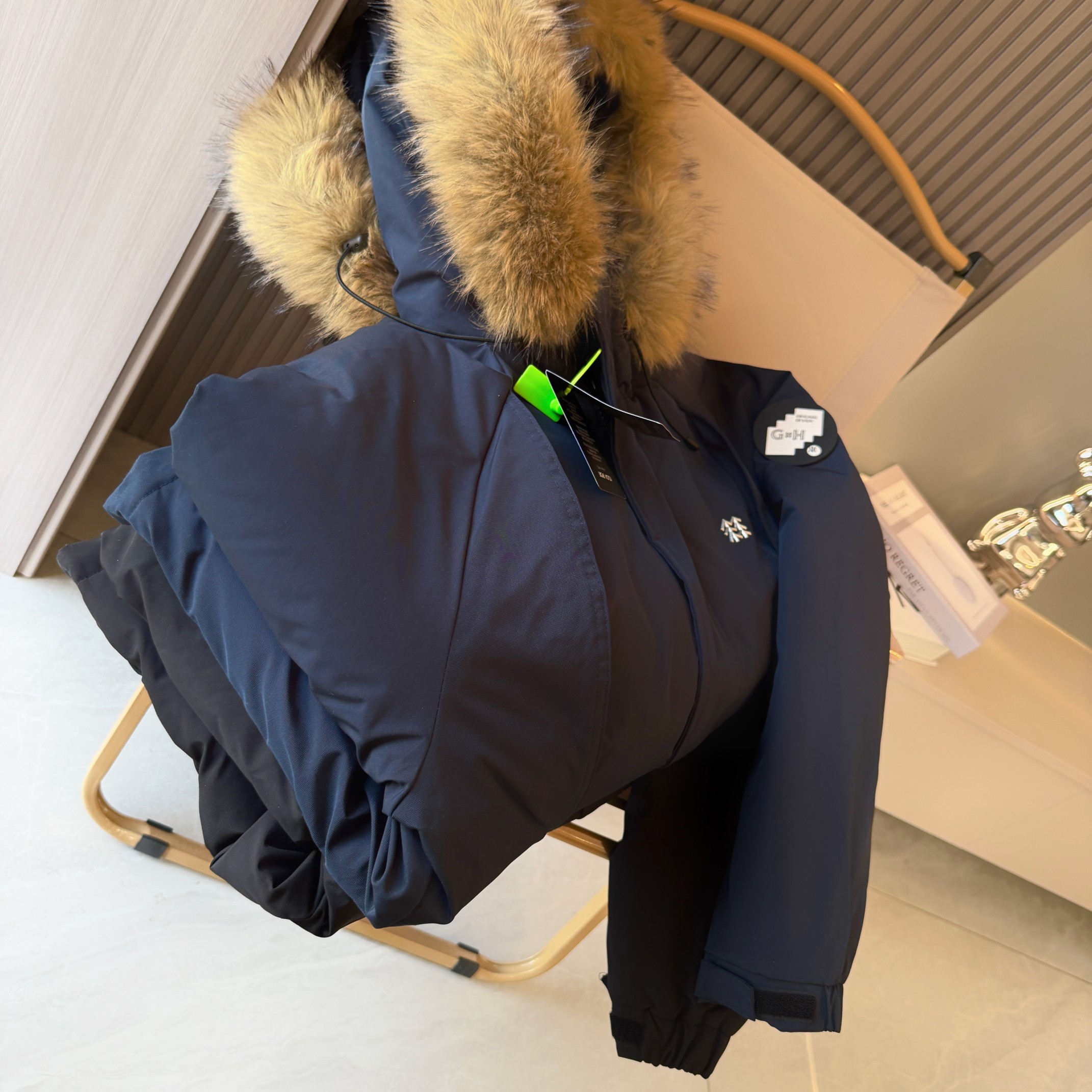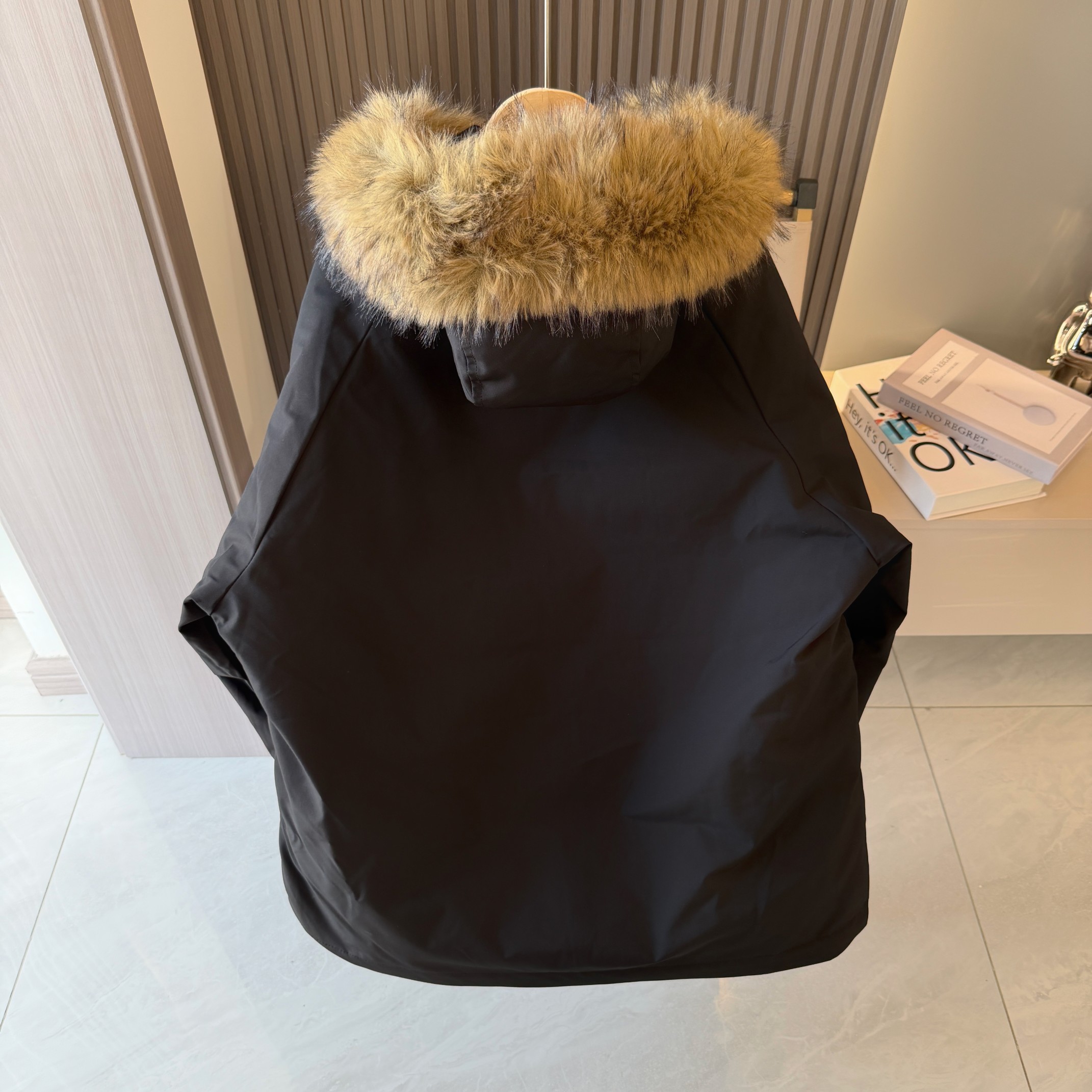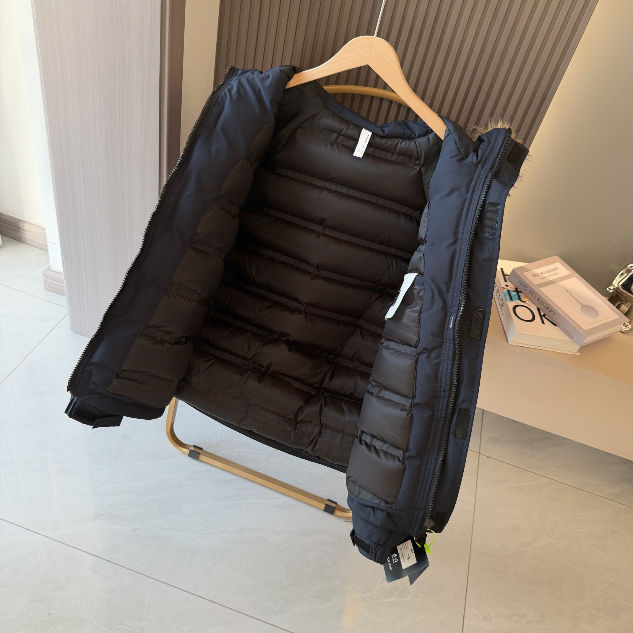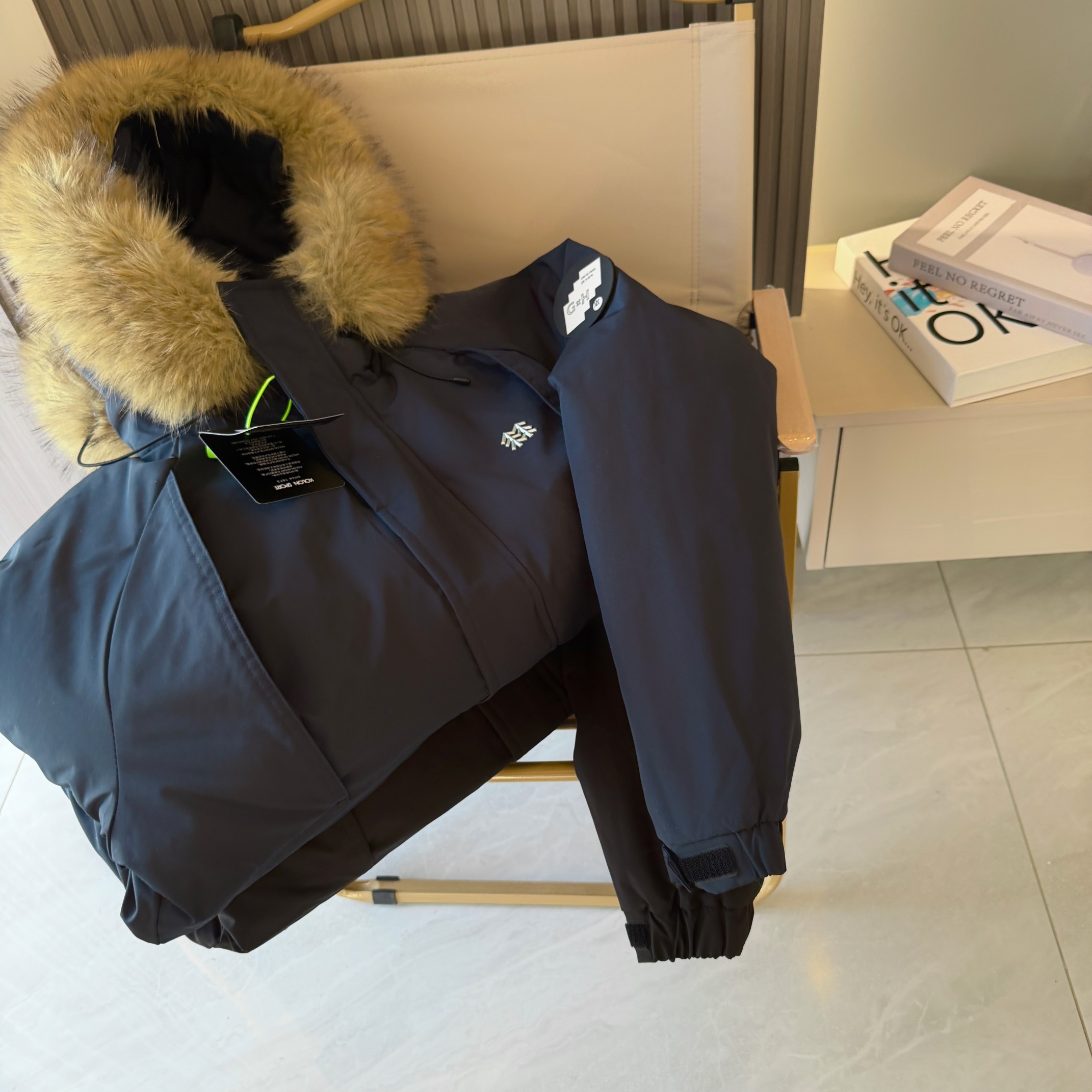 易打理不褪色 给一个健康舒适的穿着体验 可脱御帽毛设计 简约利落 由里到外细节严格把控 严防寒风入侵提高防寒保暖性 内里采用高克重丝棉超级保暖厚实 不臃肿 胸前经典Logo时尚 面料采用最新型面料 厚实 耐穿 耐磨 总之 值得自留的一件棉衣