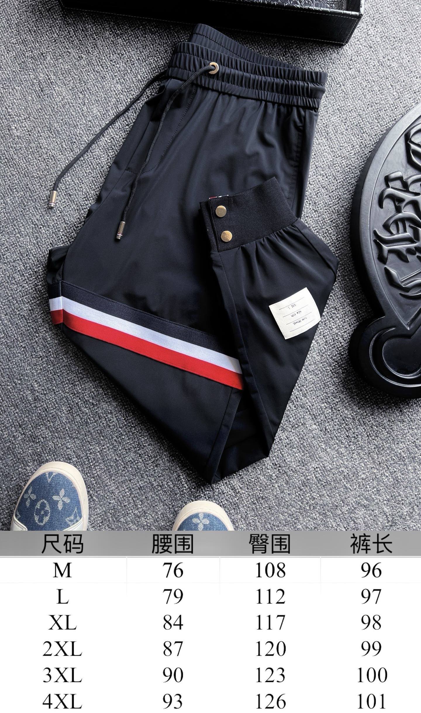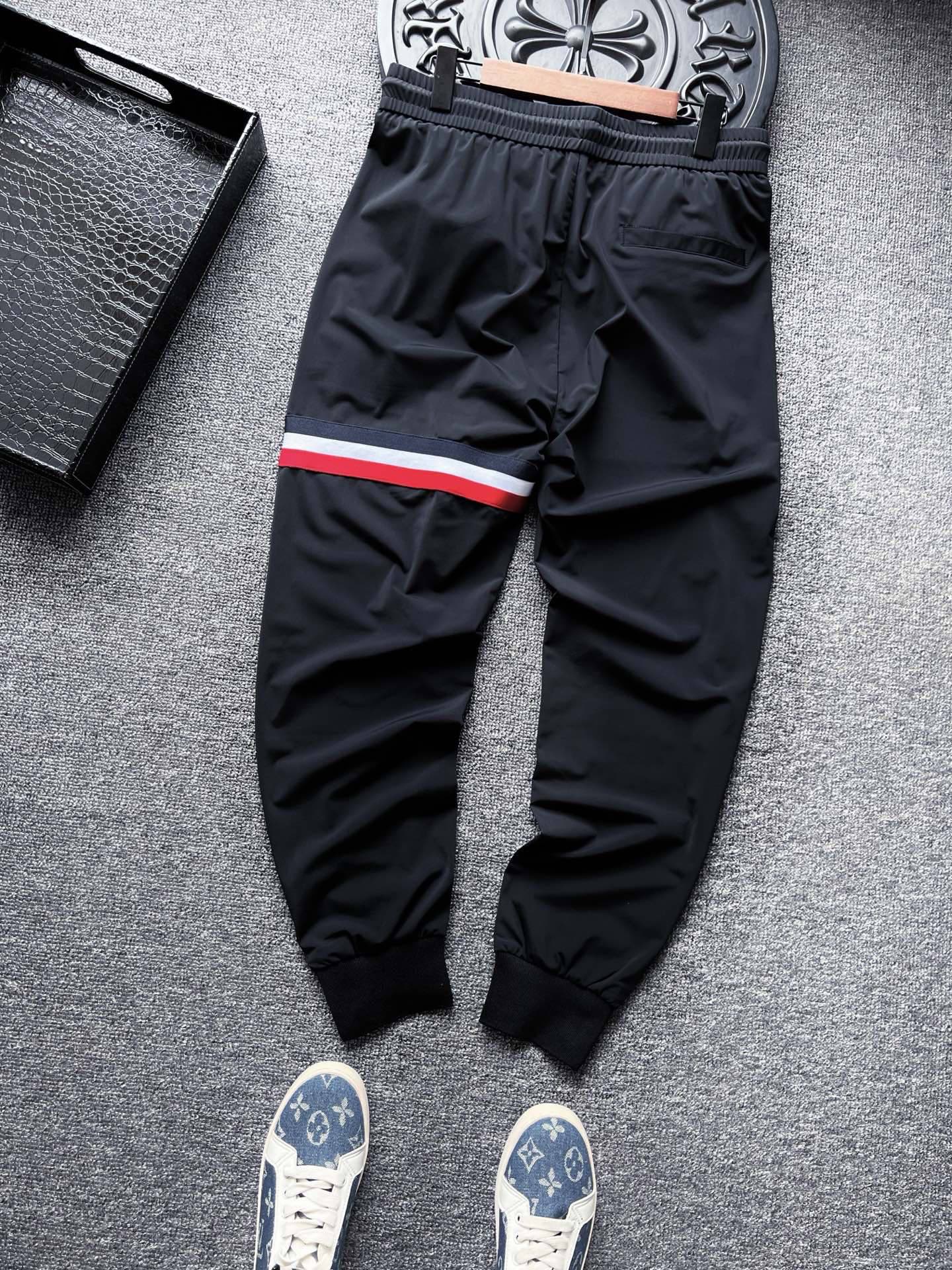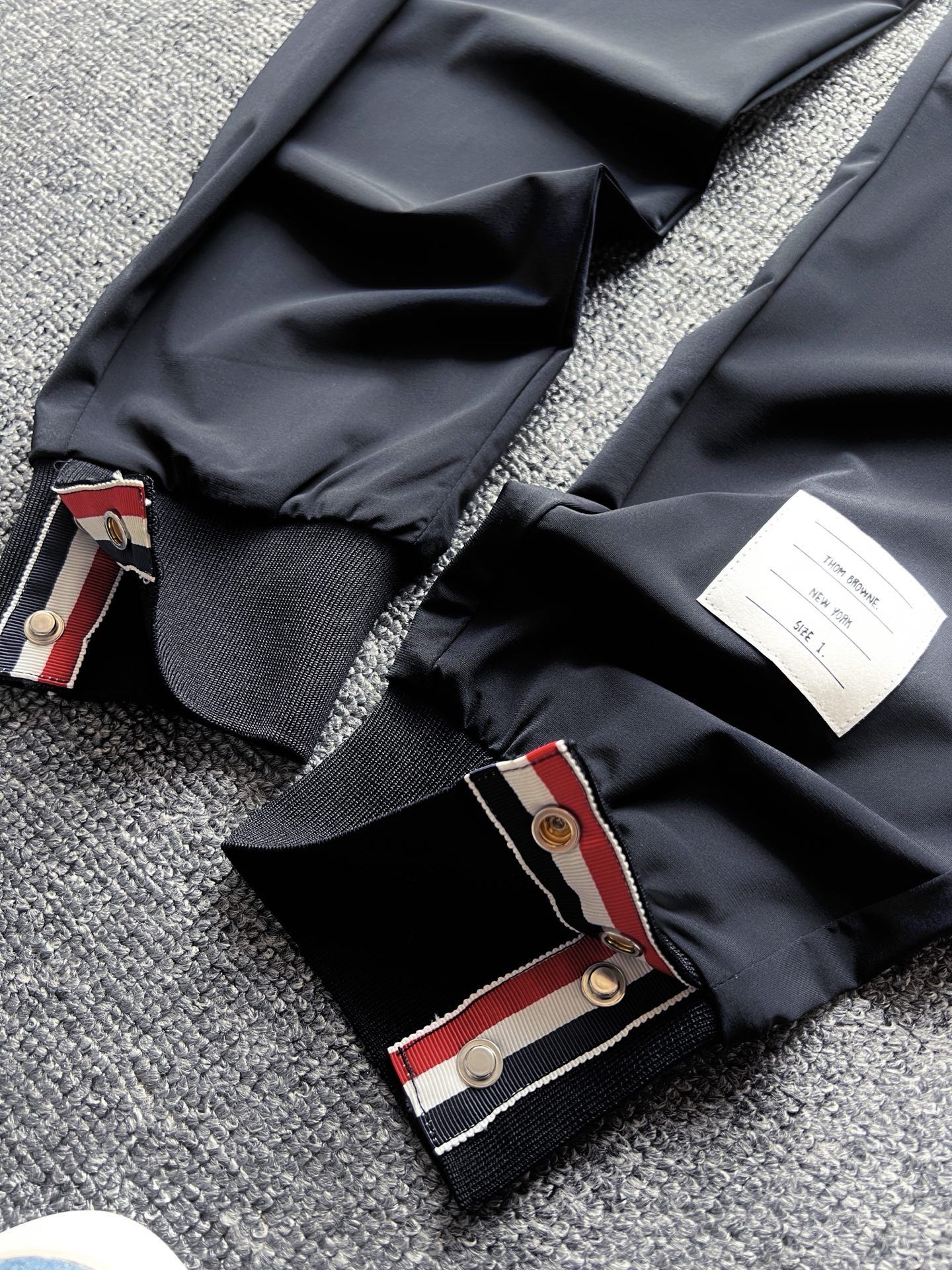细节细节再细节 TB家今年新品蚕丝长裤 左腿贯穿式高弹三色织带 裤腿标志性TB织唛小标 裤脚罗纹处双排扣内里镶嵌织带设计 全包边双包条精湛做工 细节感满满