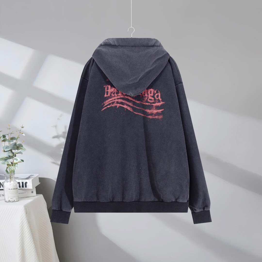 BALENCIAGA 巴黎世家2025SS 经典褪色可乐海浪印花连帽卫衣外套