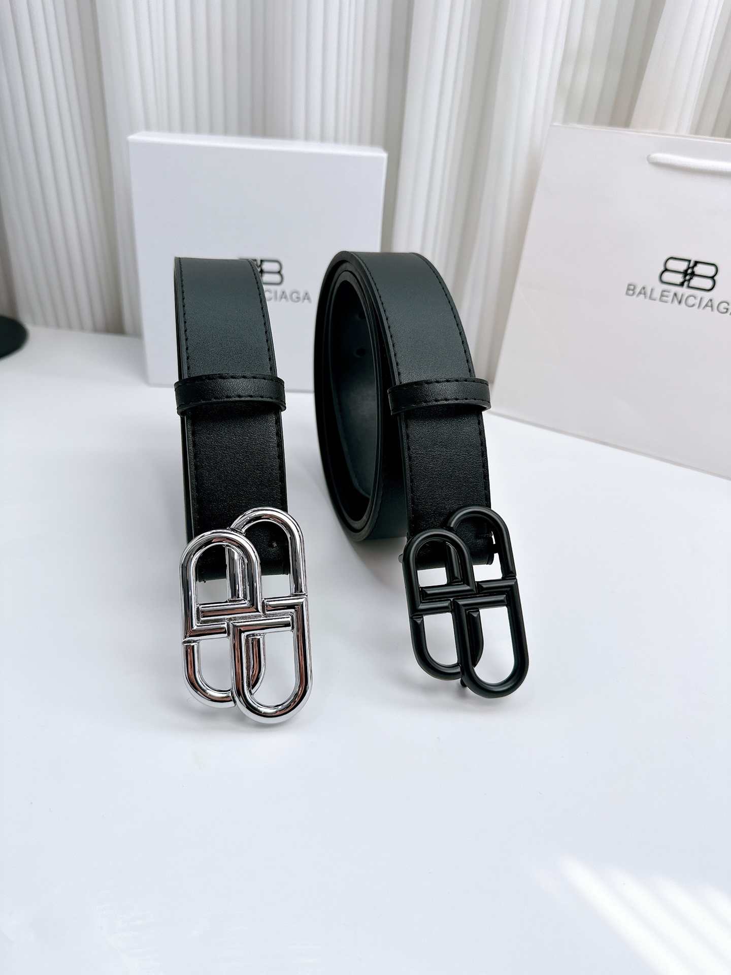 Balenciaga巴黎世家双B男士BB扣皮带腰带 银色扣头黑色扣头 配全套包装打孔器 巴黎世家腰带更是设计的杰作 标志性的品牌标识 醒目却又不失优雅 以一种恰到好处的张扬 宣告着你的时尚品味 简约流畅的带身线条 或是经典的纯色 或是独具匠心的拼接 无不展现出一种大气且前卫的时尚感 它能轻松适配各种风格的穿搭 无论是利落的西装套装 为你的商务形象增添一抹精致 还是搭配随性的牛仔裤与白T恤 瞬间提升整体造型的时髦度 让你在街头巷尾成为瞩目的焦点 4 0宽度 120长度