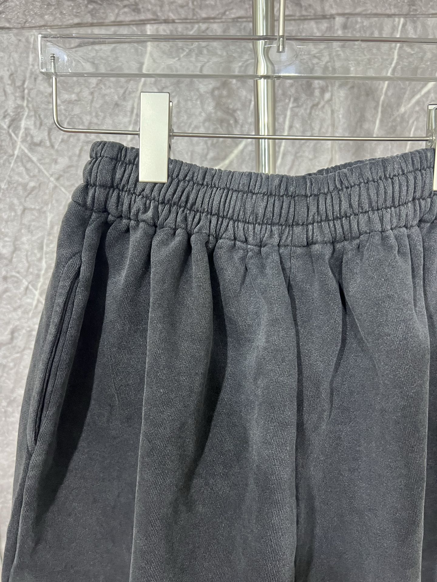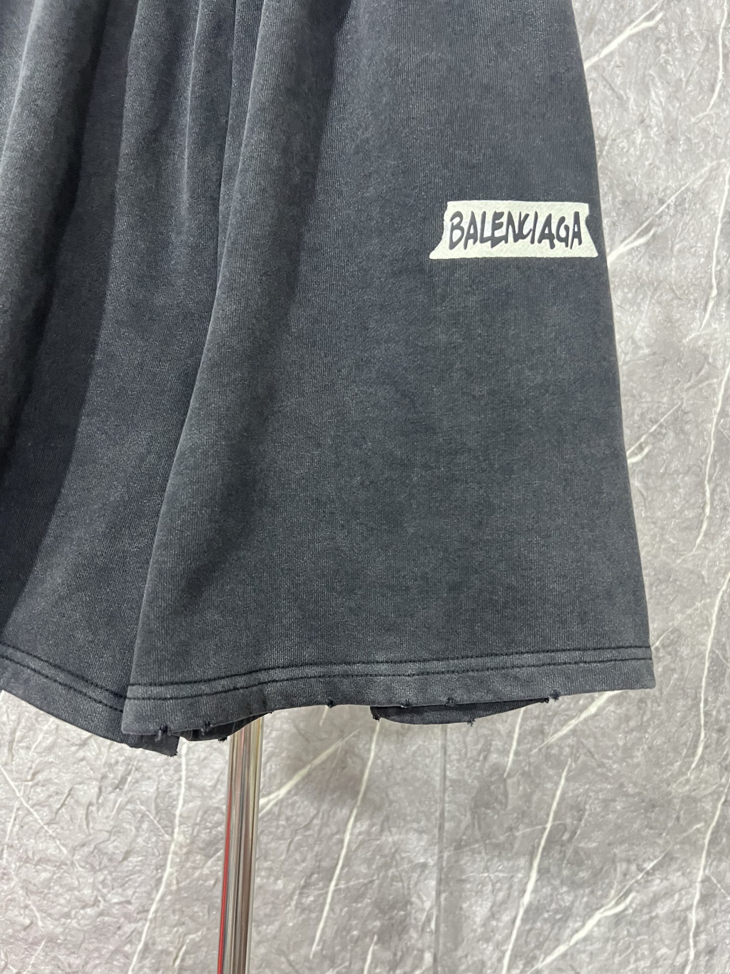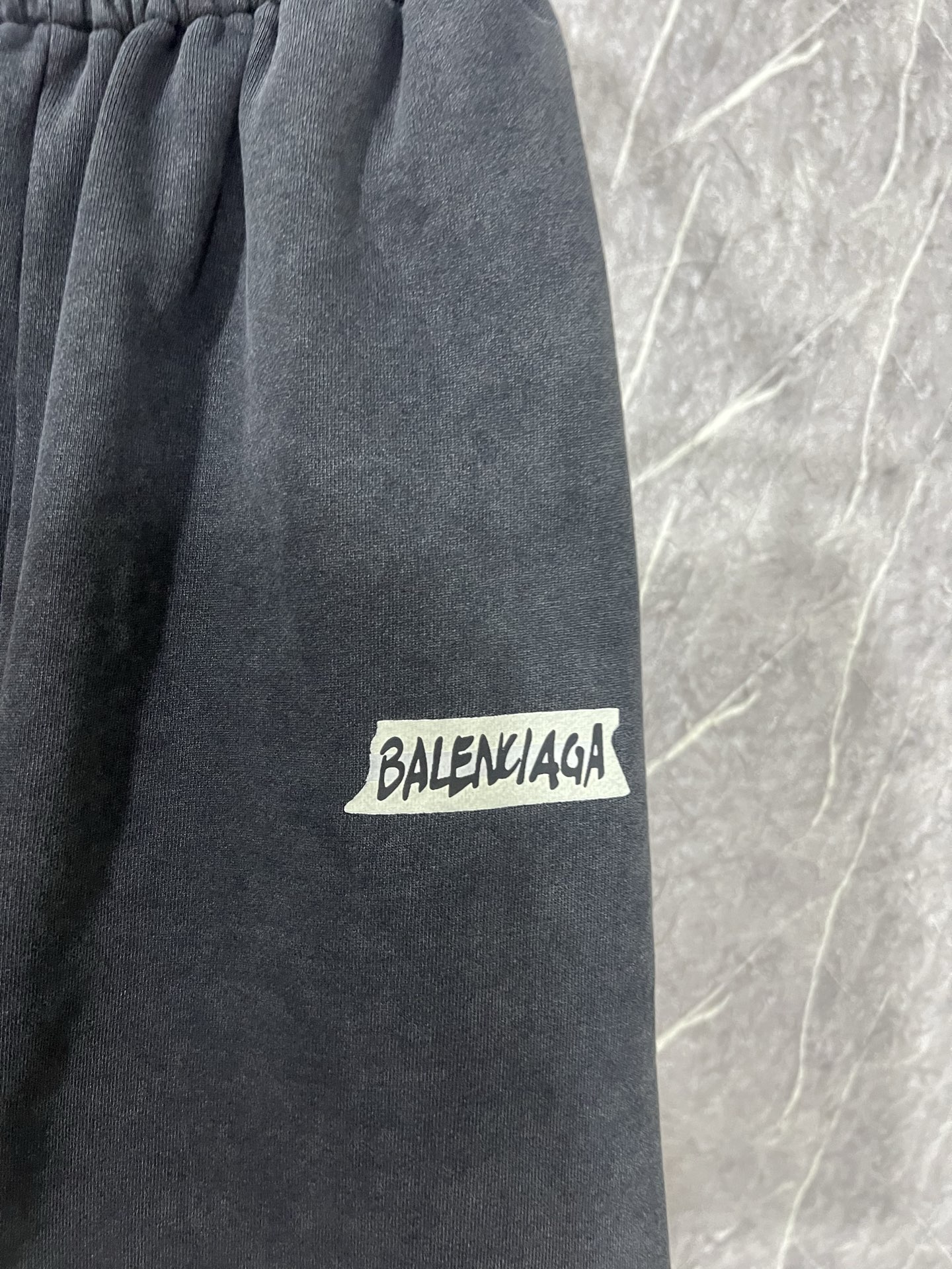 Balenciaga巴黎世家新款BLCG巴黎26fw新款 Tape Type立体胶带磨破情侣卫衣外套 套装 裤子 面料450G 螺纹480G 复古平纹面料是一种采用平纹织法制作的面料其特点是经纬纱线交织频繁 织物外观平整 纹理清晰 手感比较轻薄 面料采用较粗的纱线制成 呈现出一种复古的风格 具有良好的透气性和舒适度 前后幅字母采用立体胶浆印花 立体胶浆印花工艺是一种极具创造力和表现力的印花技术 它通过精确控制胶浆的应用 为纺织品带来了独特的质感和视觉效果 无论是细腻的线条 生动的纹理还是立体的图案 立体胶浆印花都能完美呈现 胚布成衣印花后进行炒色工艺制作而成 炒砂后面料轻微泛白 全身定位磨破细节处理 改变原面料颜色呈现出深浅一明暗不同的怀旧色彩