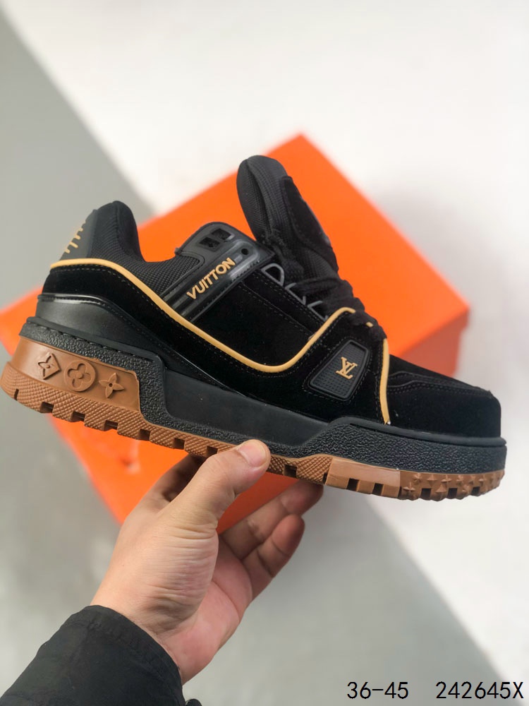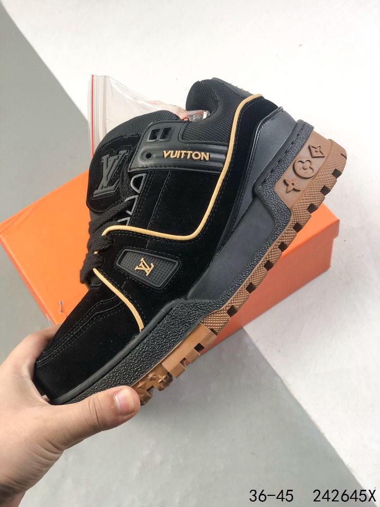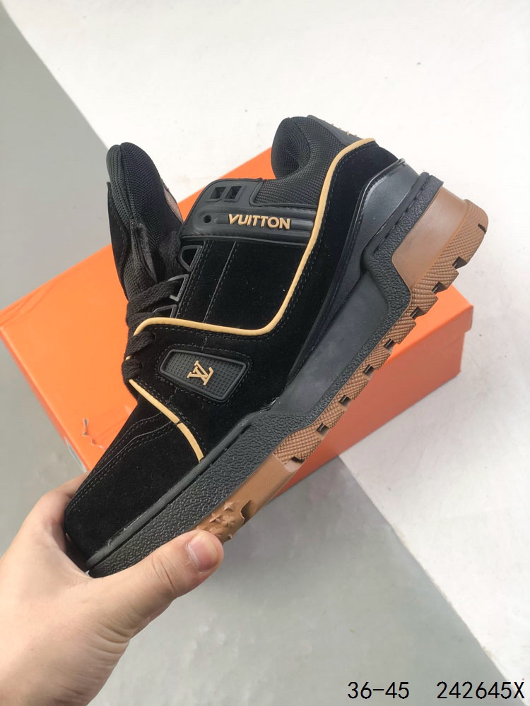 LV路易威登Louis vuitton Trail Sneaker Low 休闲运动文化百搭篮球板鞋 致TPR光泽鞋底 耐弯折滴塑支持片 鞋垫嵌入超软脚感乳胶材质的篮球鞋 Size 如图所示 ID 242645X