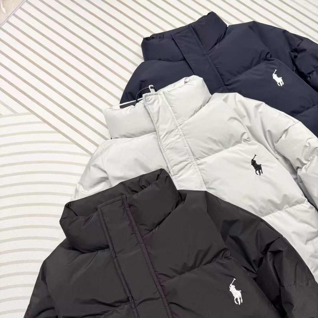 新款上新 刚刚到2025最新款Ralph Lauren拉夫劳伦男女情侣款胸前背面大LOGO刺绣面包羽绒服 冬日氛围感保暖穿搭 经典连帽拉链可拆卸 做到一衣两穿 标志性小马标刺绣 简约休闲廓形 低调中透出高级质感 背后大面积刺绣 洋气十足 黑色沉稳大气 永不过时 冰川蓝清新百搭干净明亮 藏青洋气大方 自带时髦提升感