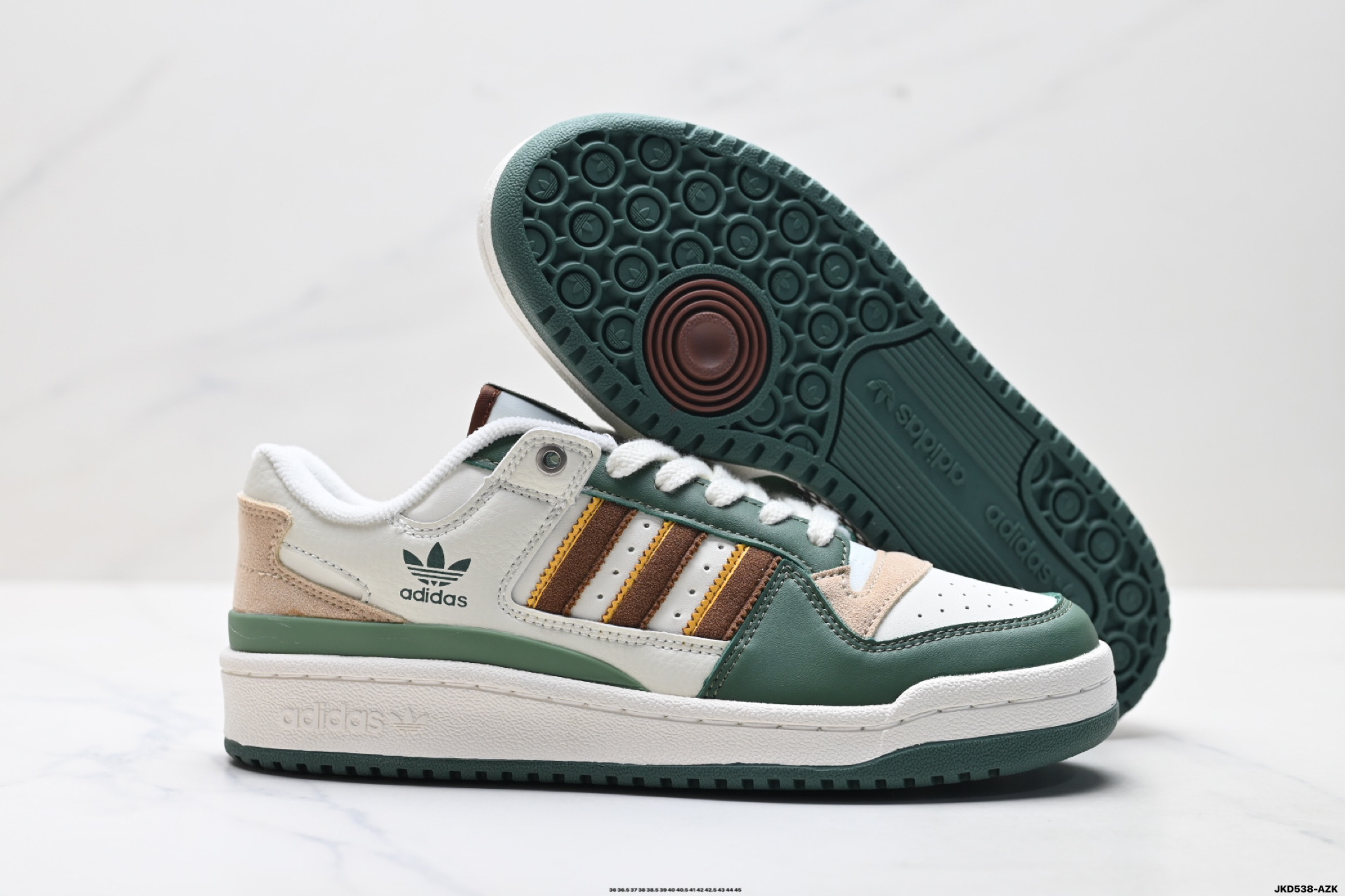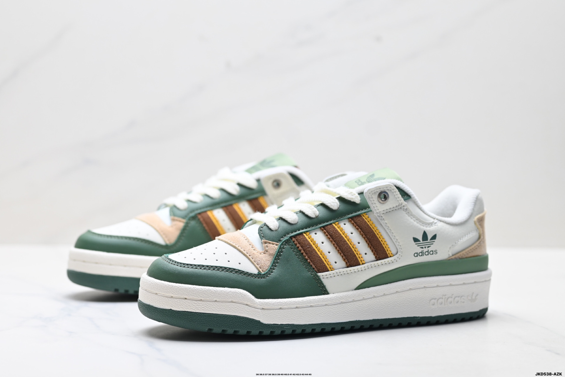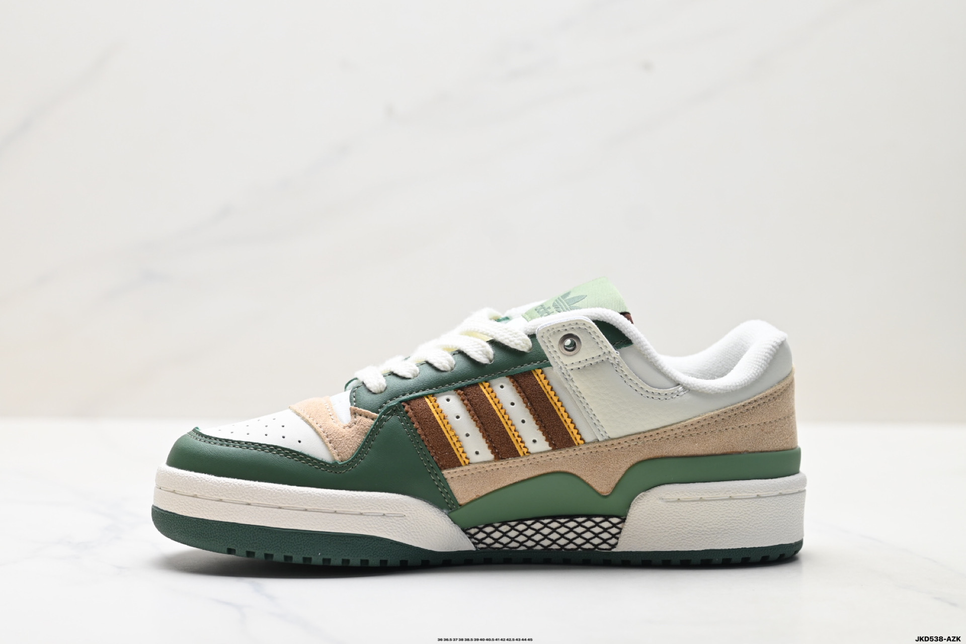 以复古篮球鞋的外形为基础 采用皮革拼接 简约百搭 更加贴合舒适 中底内侧网格造型起到点睛之笔 外底橡胶 更显复古