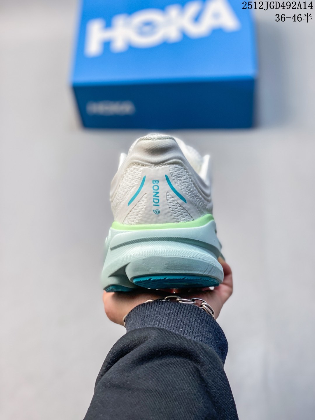 HOKA畅行无阻 HOKA ONE ONE Bondi 9 舒适百搭耐磨轻便 低帮跑步鞋 男女款 Bondi 9 最显著的变化在于其鞋底单元 原本扎实可靠的鞋底变得更加厚实 其厚度堪称 近乎巨型尺寸 对于钟情超厚底结构的消费者而言 无疑是最佳选择之一 在 HOKA 的新季展示会上 Bondi 9 以全新造型亮相 不仅外观升级 性能也得到官方宣称的显著提升 在重量方面 以美国男士 10 码为例 它比前代整体轻将近一盎司 实现了轻量化突破 这双鞋搭载 HOKA 最大缓冲中底 使鞋底增加两毫米高度 同时加持超临界泡沫 这种先进 轻便且富含弹性的高机能材料 为穿着者提供更卓越的缓震体验 此外 重新设计的 3D 模制鞋领和针织鞋面 能更加贴合脚部 提升穿着舒适度