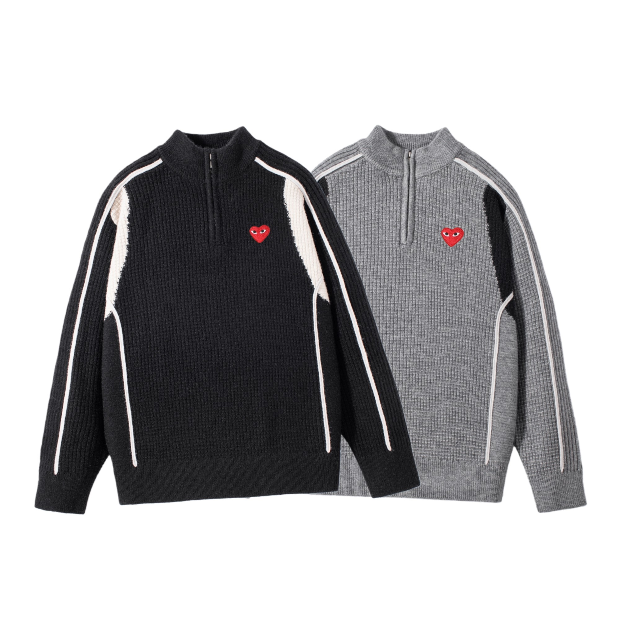160142143 - 供 CDG PLAY川久保玲爱心刺绣半拉链撞色针织毛衣 351759