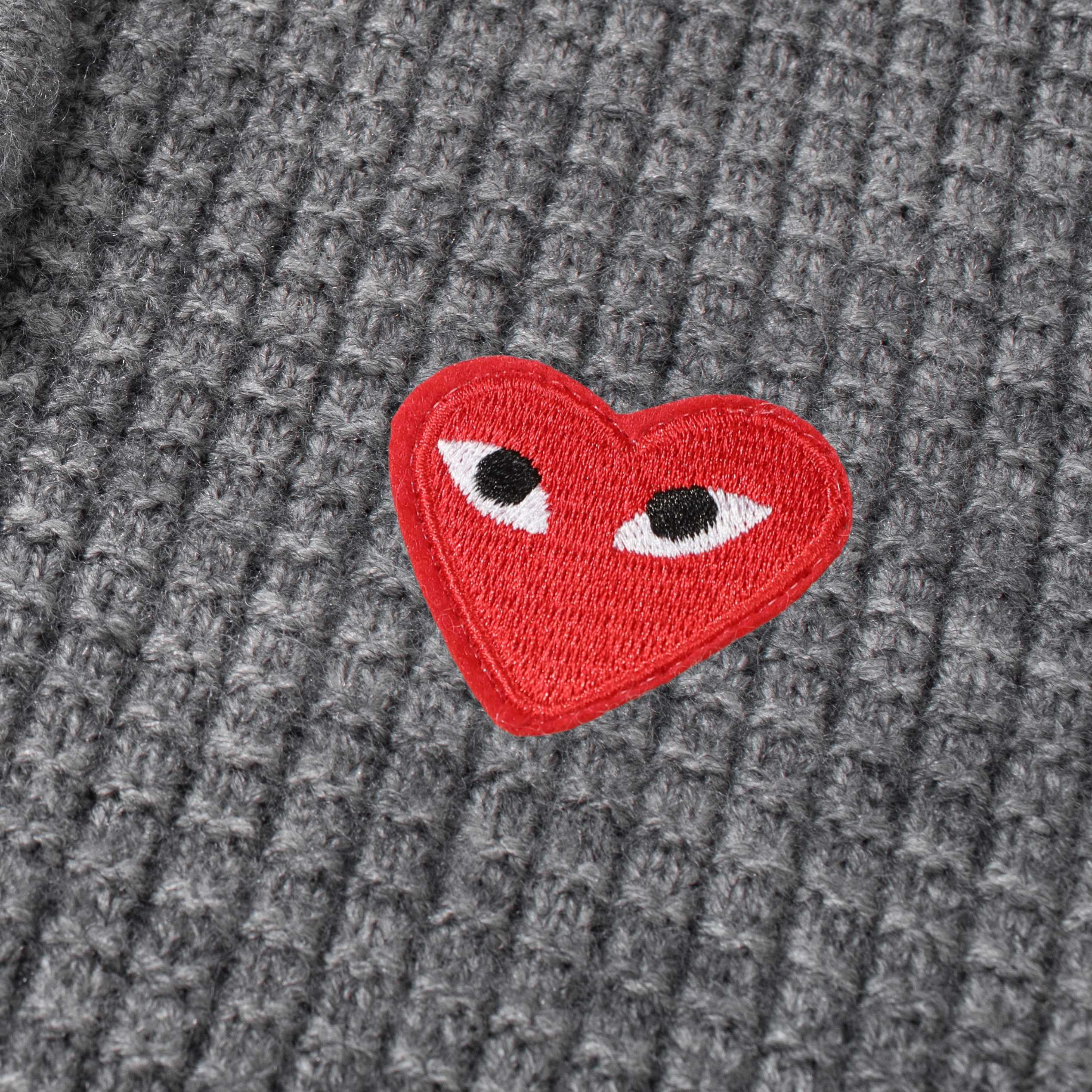 供 CDG PLAY川久保玲爱心刺绣半拉链撞色针织毛衣