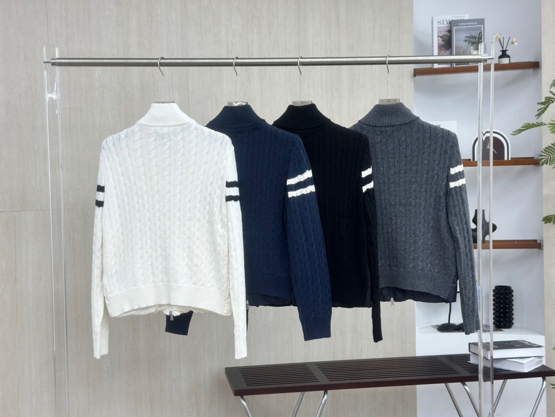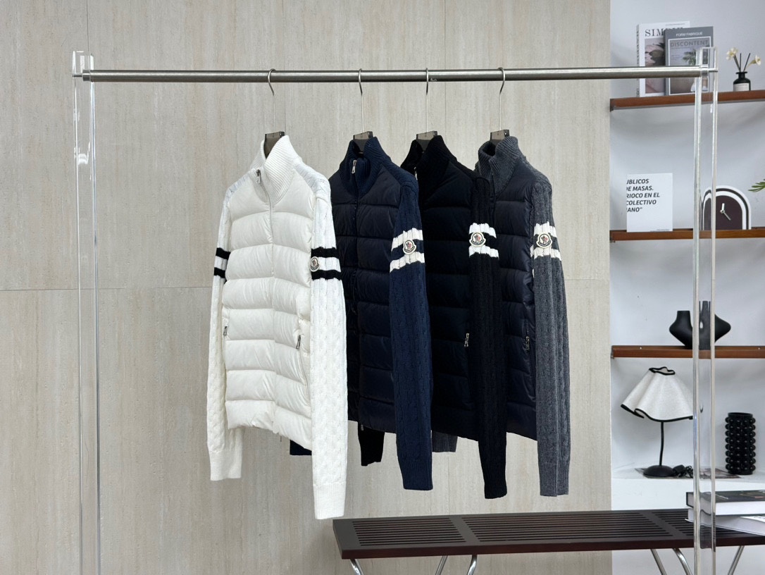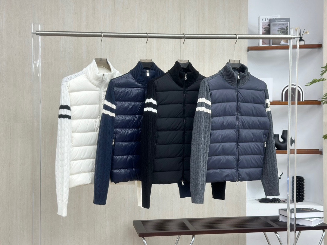 350163107 - 顶级版本 Moncler 丨蒙口TB袖标针织拼接立领羽绒服 385141