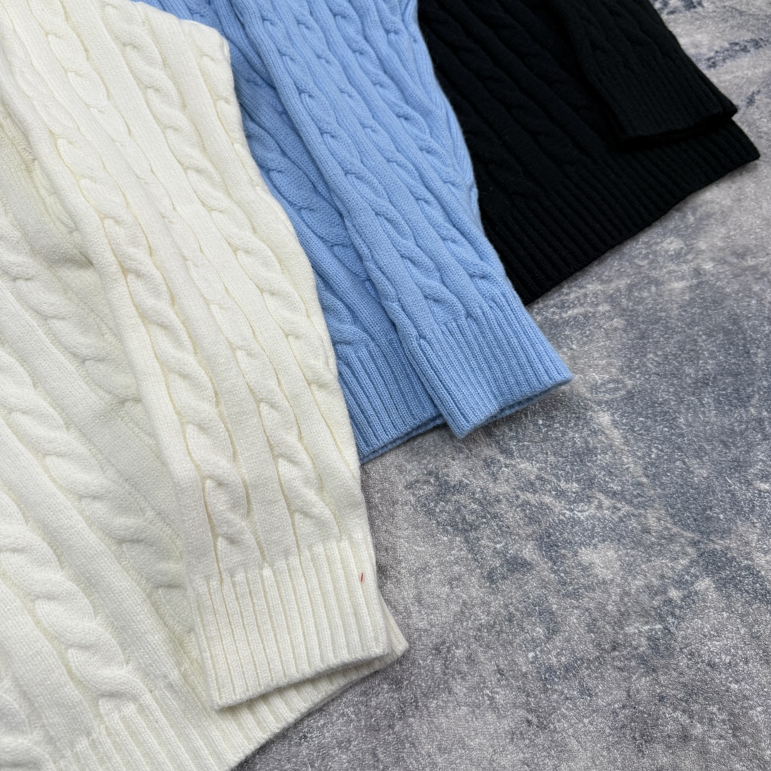 定织纯棉纱线面料 大身绞花提花工艺 刺绣小马logo