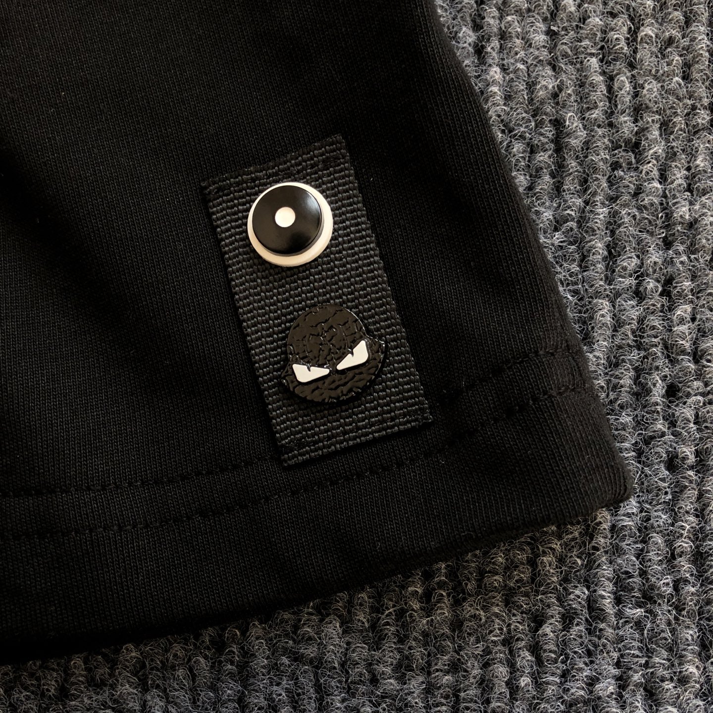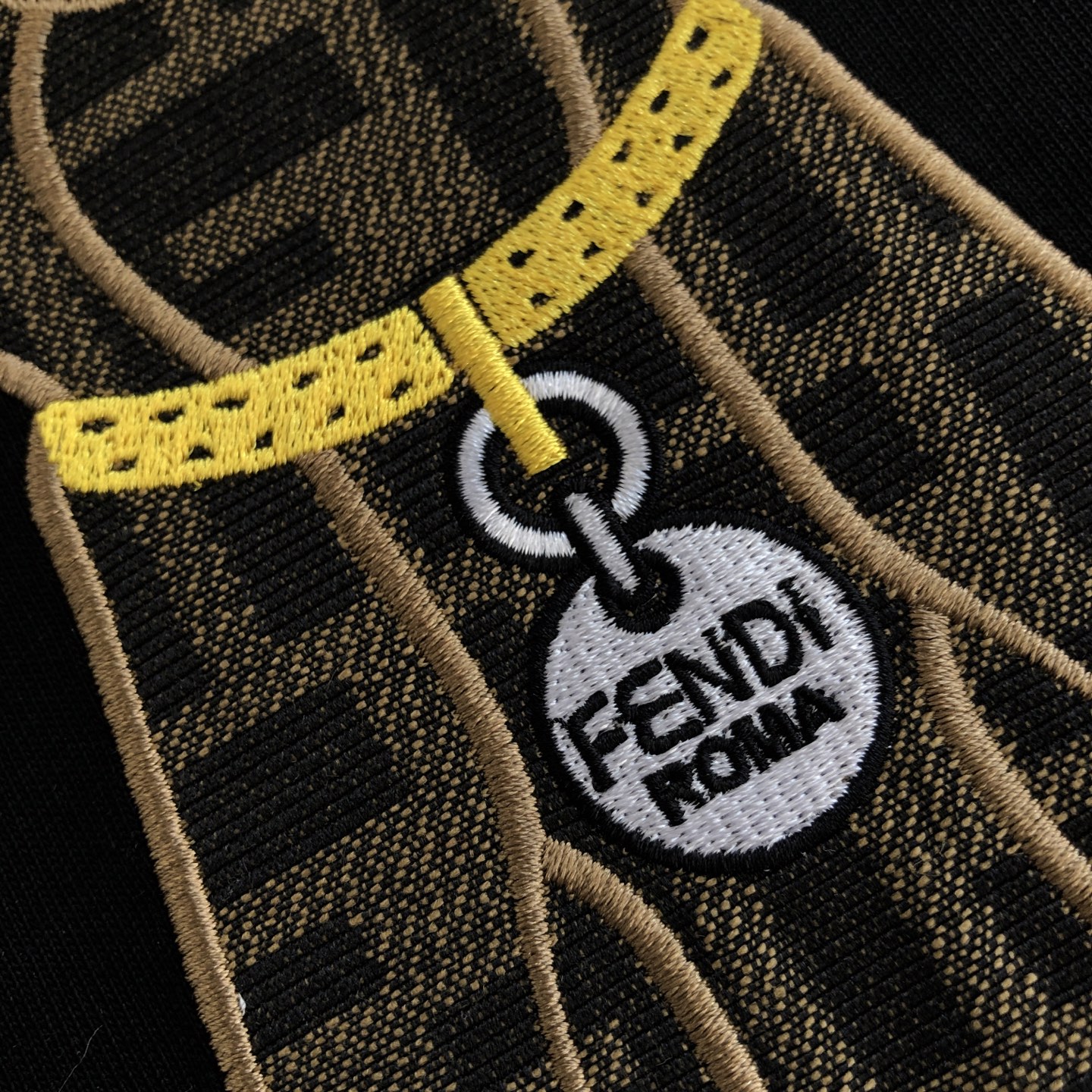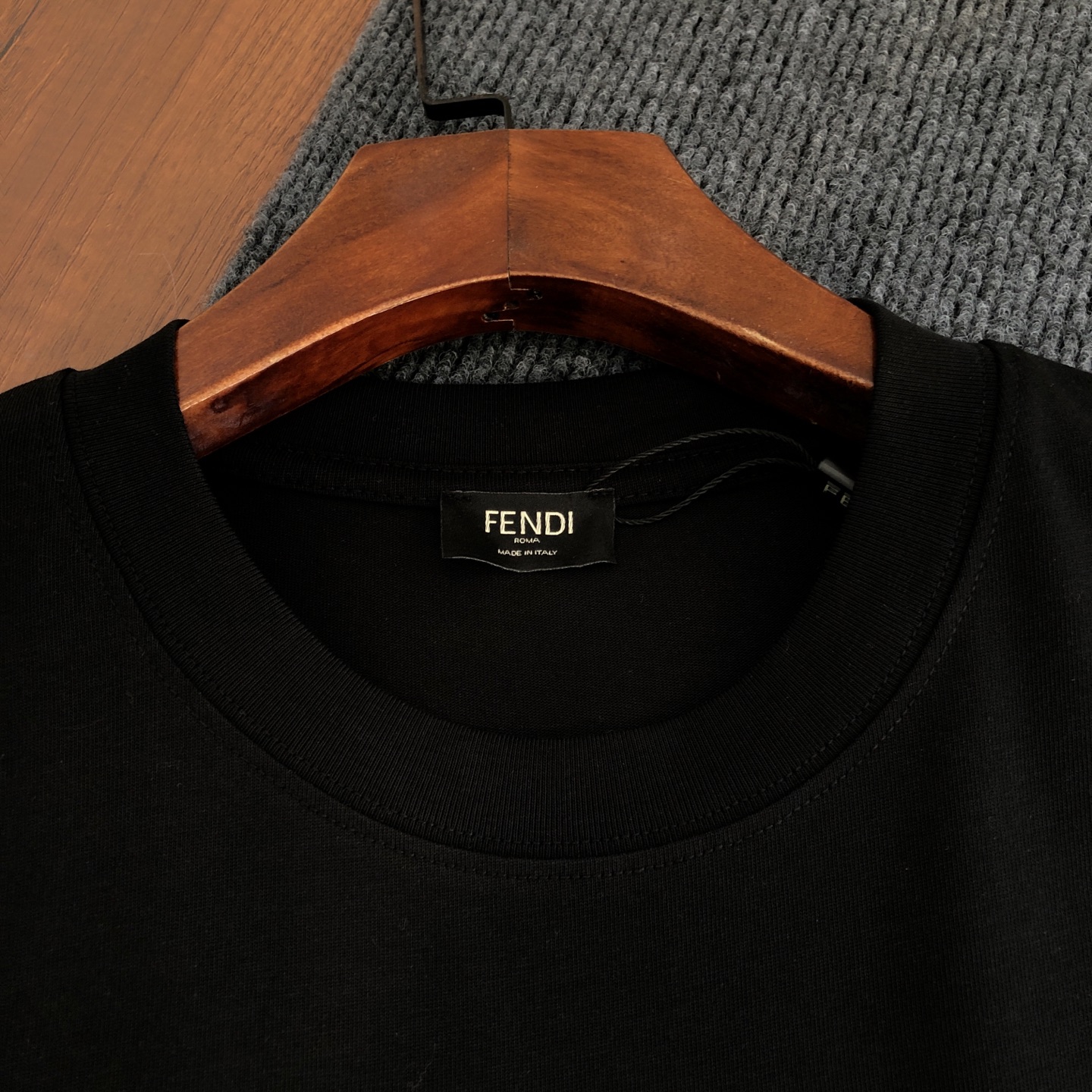 胸前字母 刺绣工艺左下角有定制F纽扣以及Fendi小铭牌每一处细节都是相当的完美面料为260g纯棉面料手感非常舒服 超级百搭好看的一款短袖
