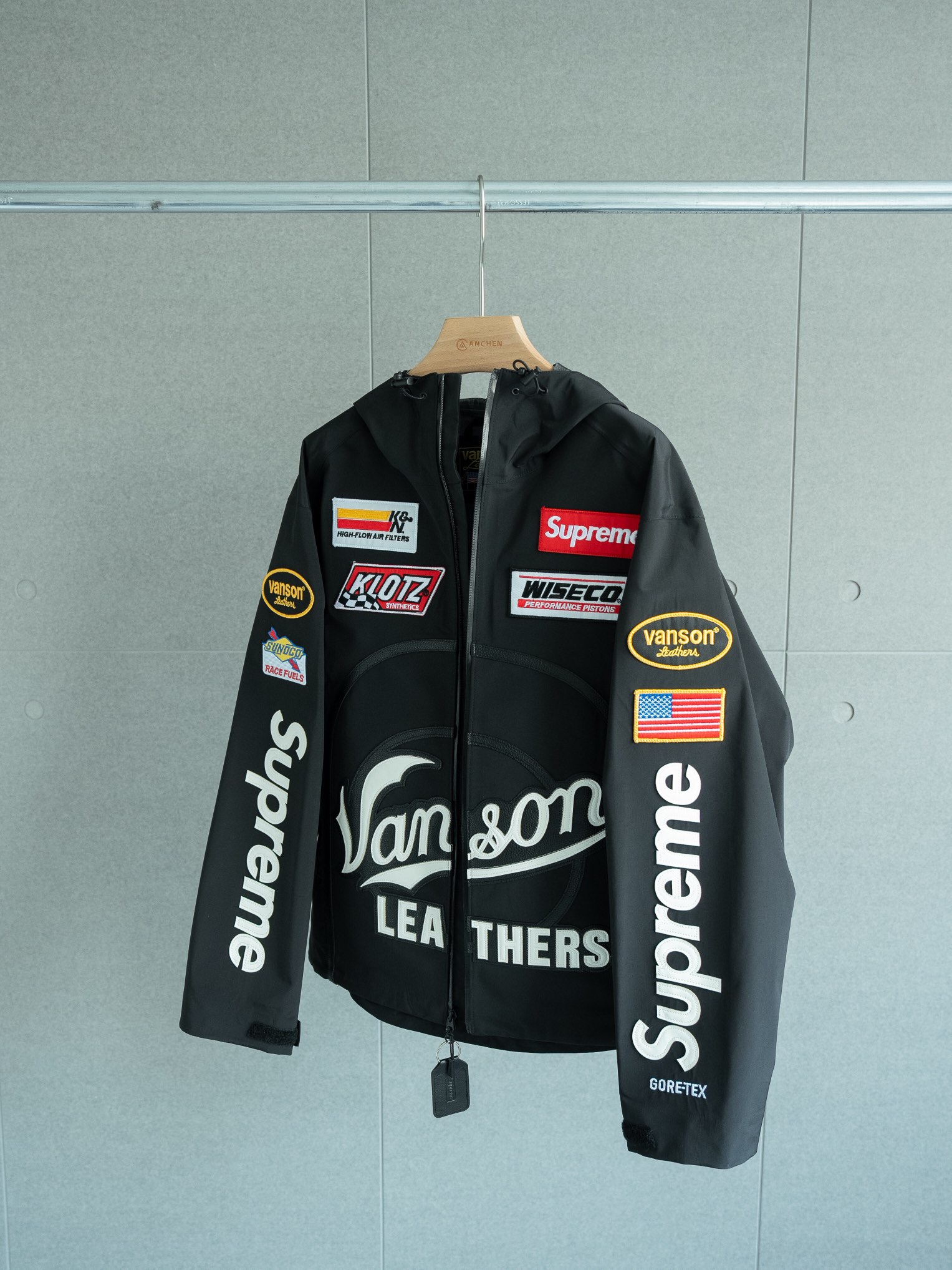 超级顶货 自留蓝色 Supreme x Vanson Leathers 联名款 FW25 GORE TEX Shell Jacket 休闲徽标贴花防水拉链夹克 男女同款