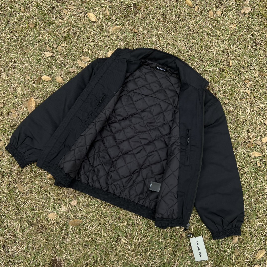巴黎世家cocoon kick双环刺绣标 格子纹理夹克薄棉外