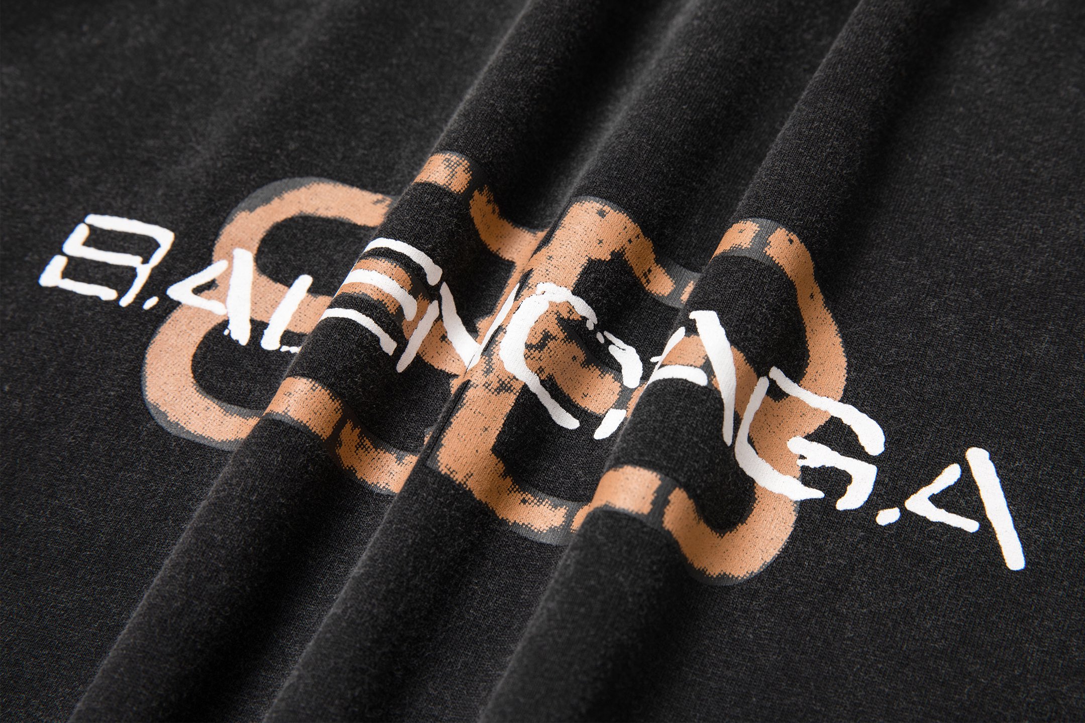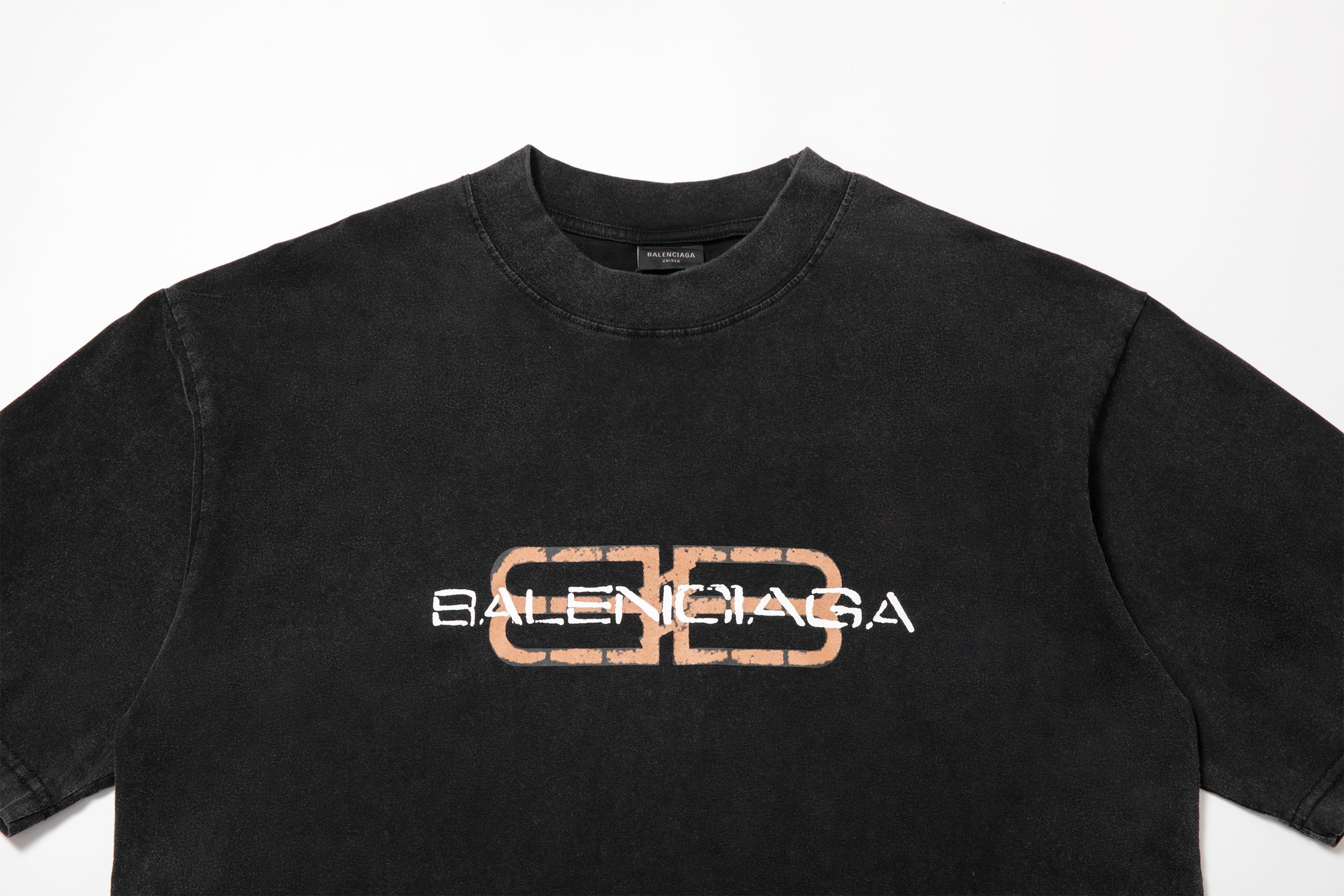 细节图 顶级版本 BALENCIA GA 官网品质 巴黎新款胸前模糊双BB印花LOGO印花短袖T恤 OS版型 宽松落肩 男女同款 面料 260克100 纯棉双纱 工艺 前幅印花 成衣洗水 做旧 定型 固色 颜色 水洗黑 尺码 XS S M L