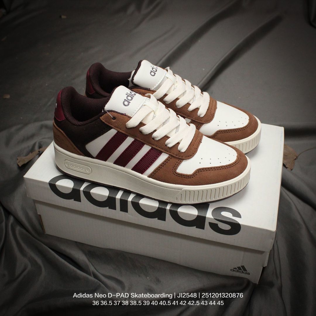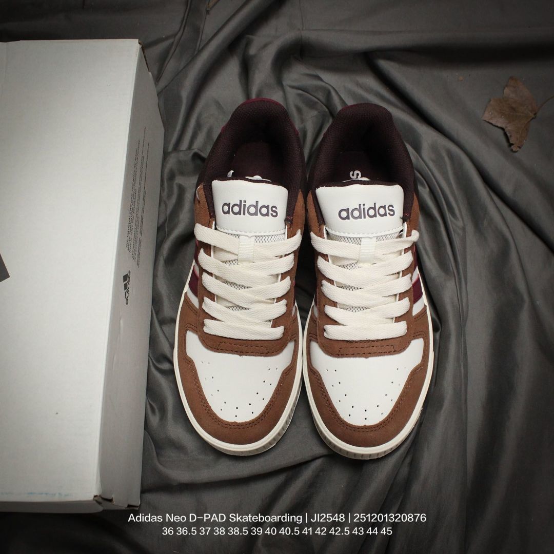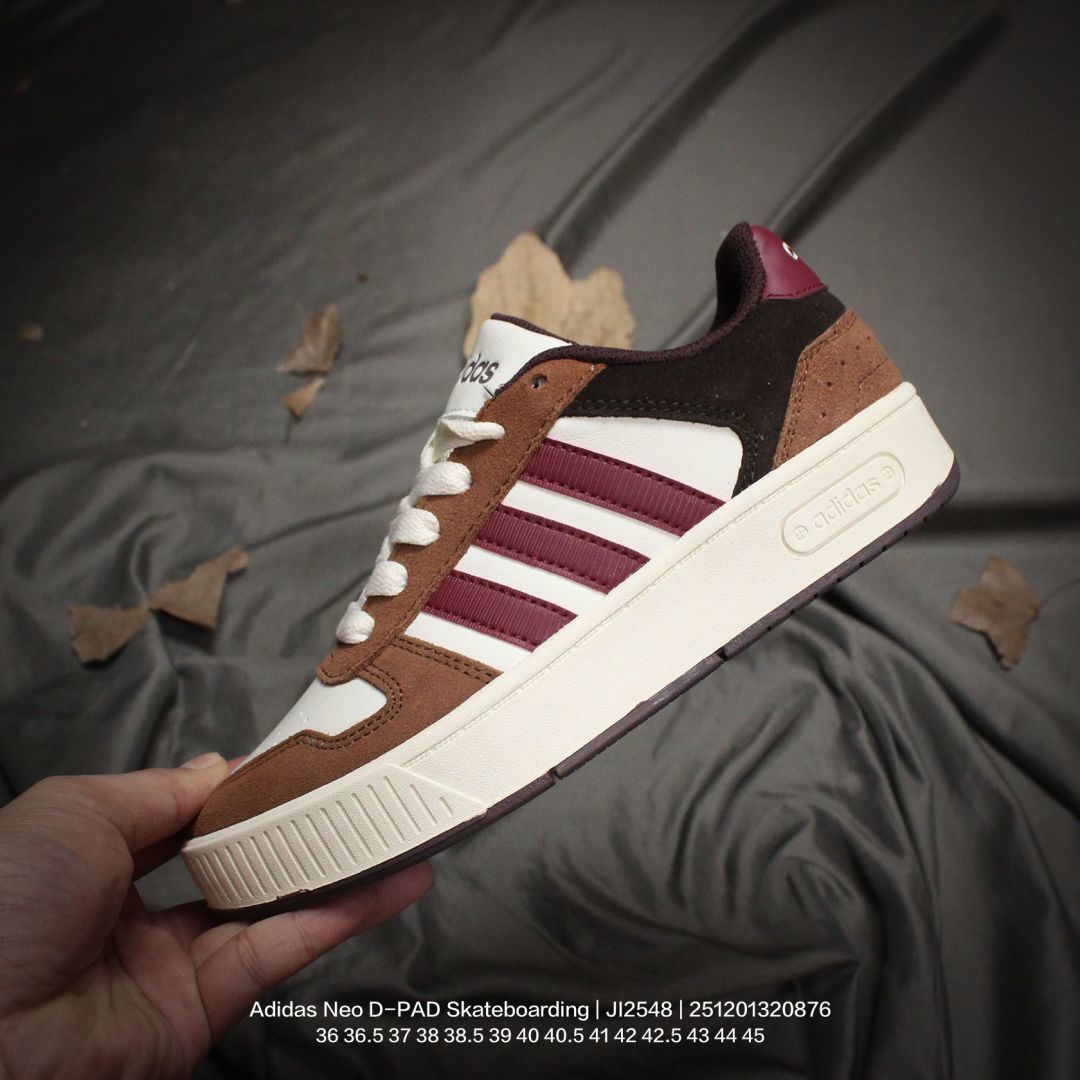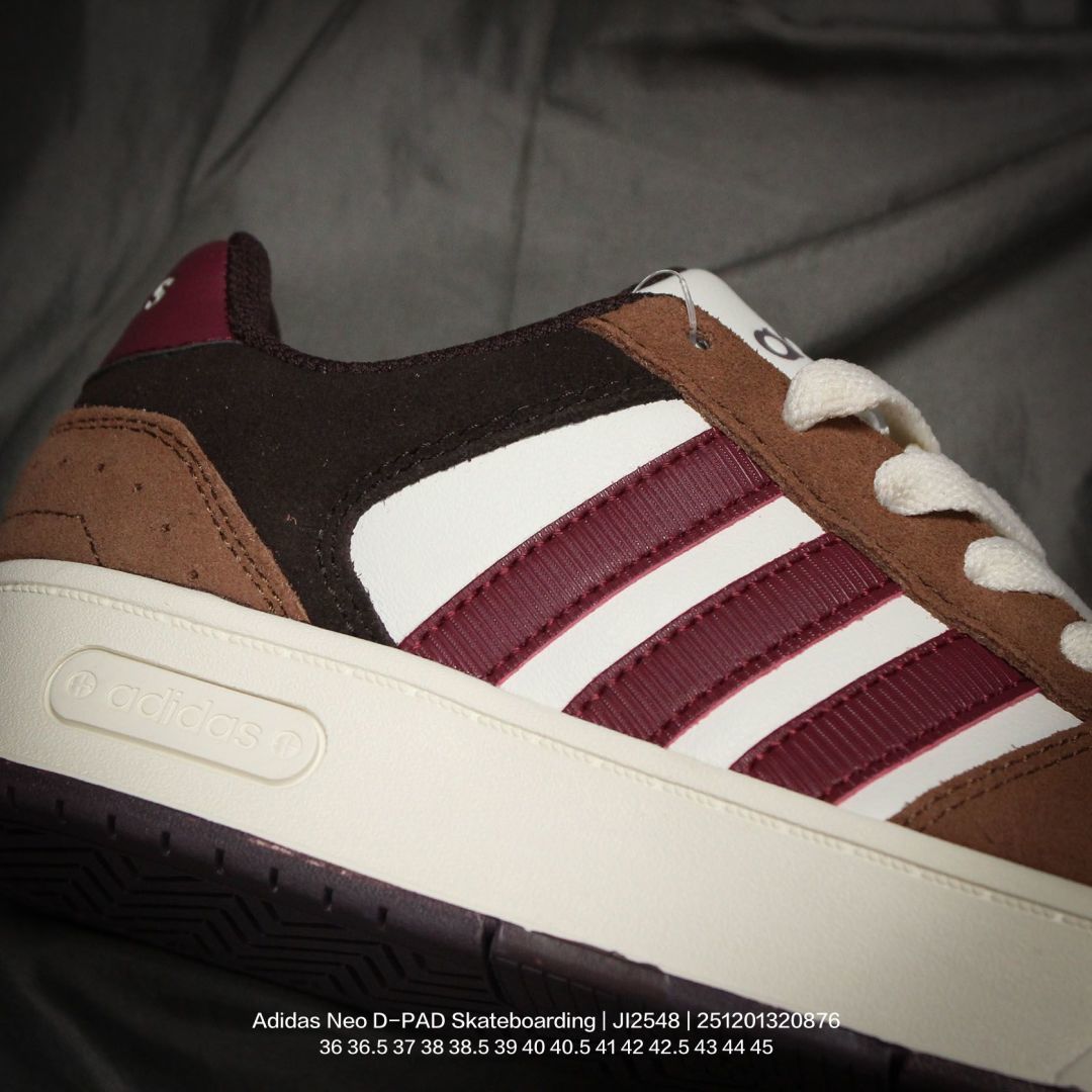 Adidas 阿迪达斯 男女鞋半码制 原楦原纸版开发 采用软质移膜牛剖革组合翻毛皮鞋面彩 外置耐磨橡胶鞋底NEO生活城市系列 阿迪达斯Adidas Neo D PAD Skateboarding 方向系列低帮复古休闲运动滑板鞋 JI2548