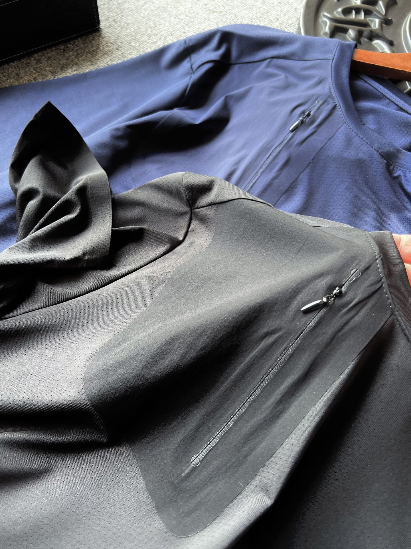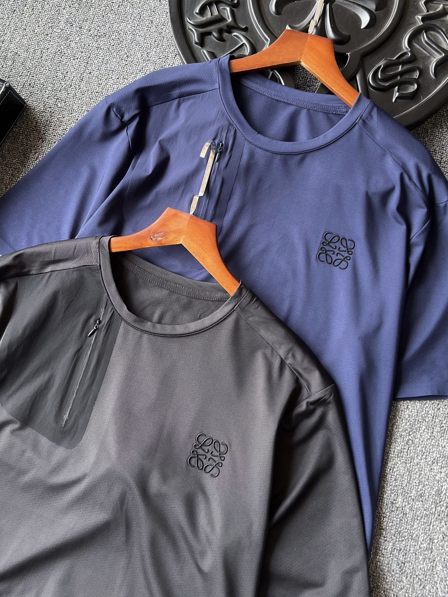 细节细节再细节 Loewe家运动无缝速干T恤 右侧上方无缝压胶贴袋配套隐形拉链设计 胸前3D浮雕立体罗意威硅胶小标 细品清晰可见表层纹理 十分精致 双袖以及下摆做了无缝锁边工艺