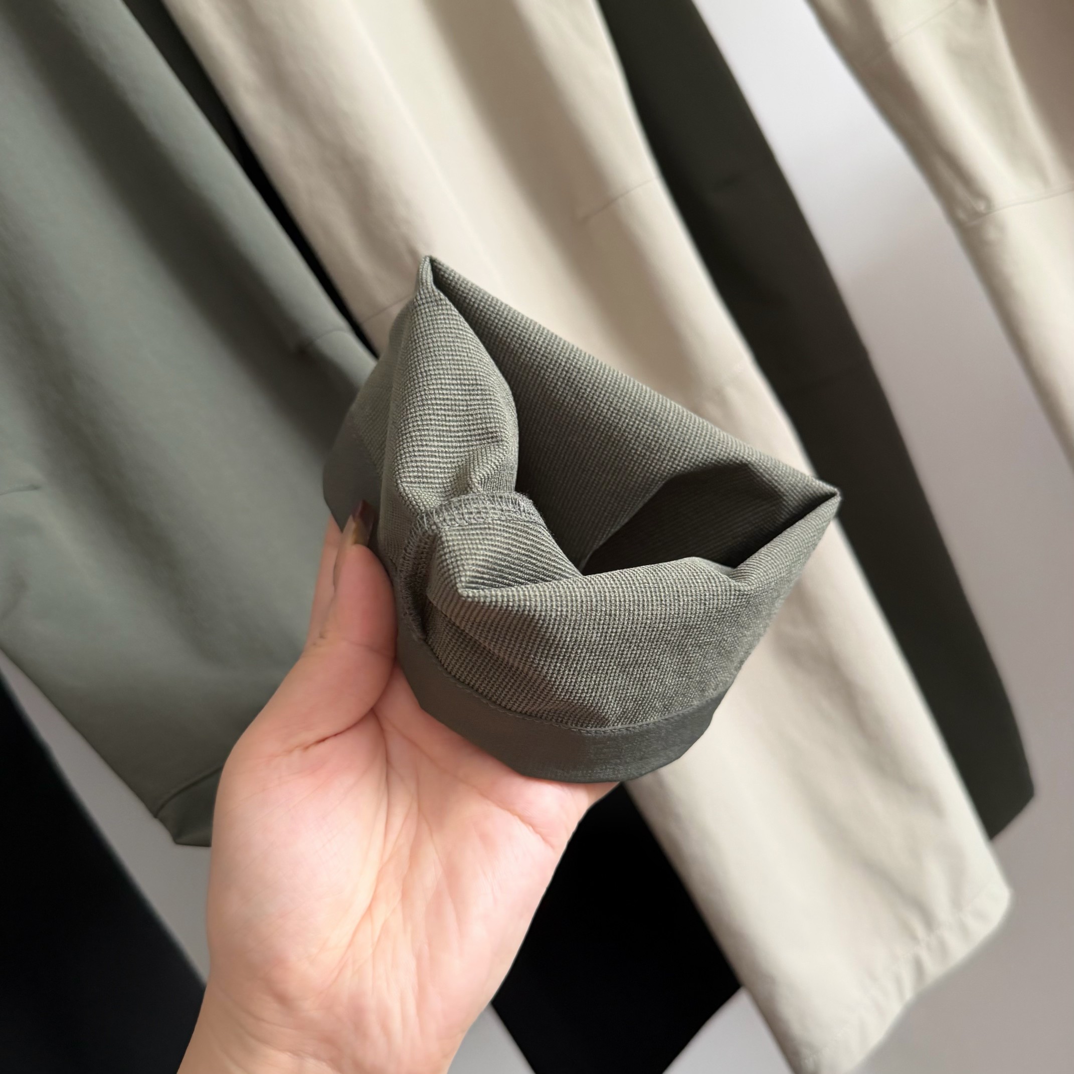 腰身单粒扣 拉链门襟闭合 简洁大方 带双匝线腰袢 纽扣和拉链均是同色定制