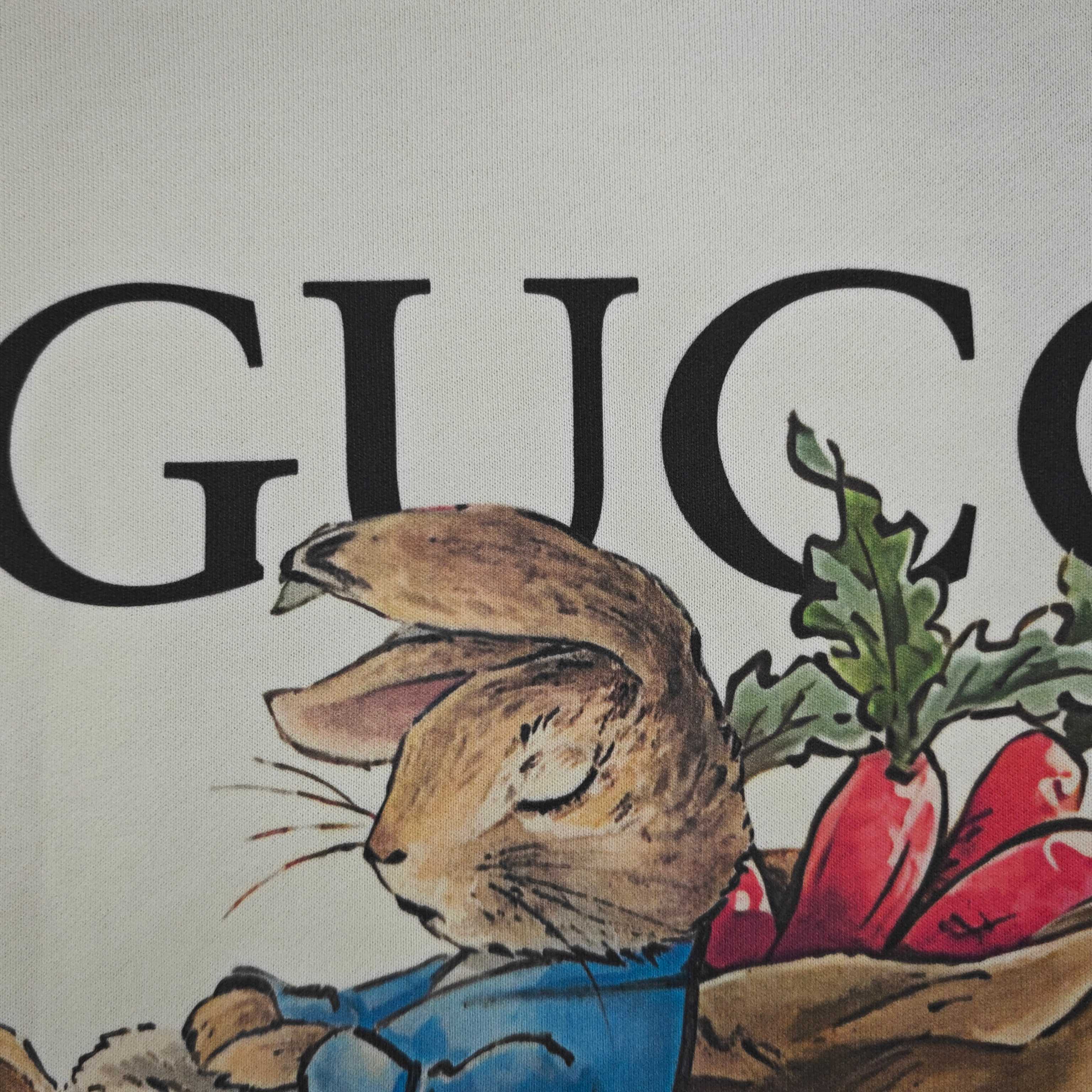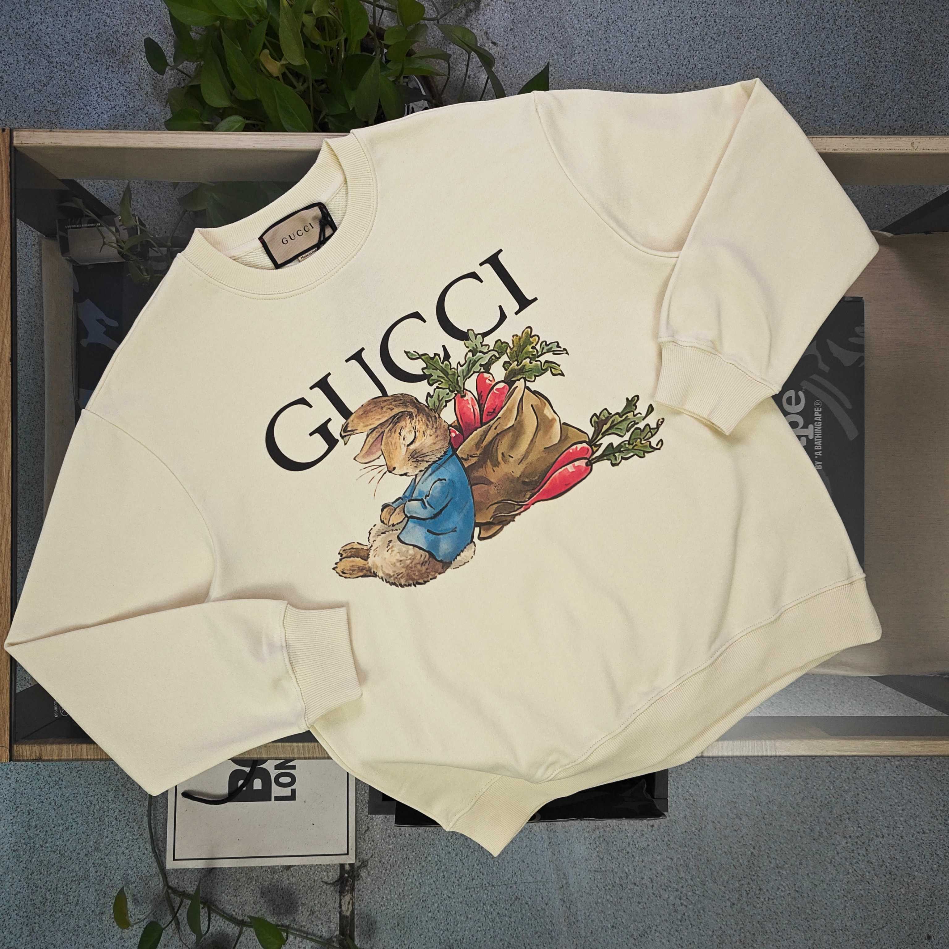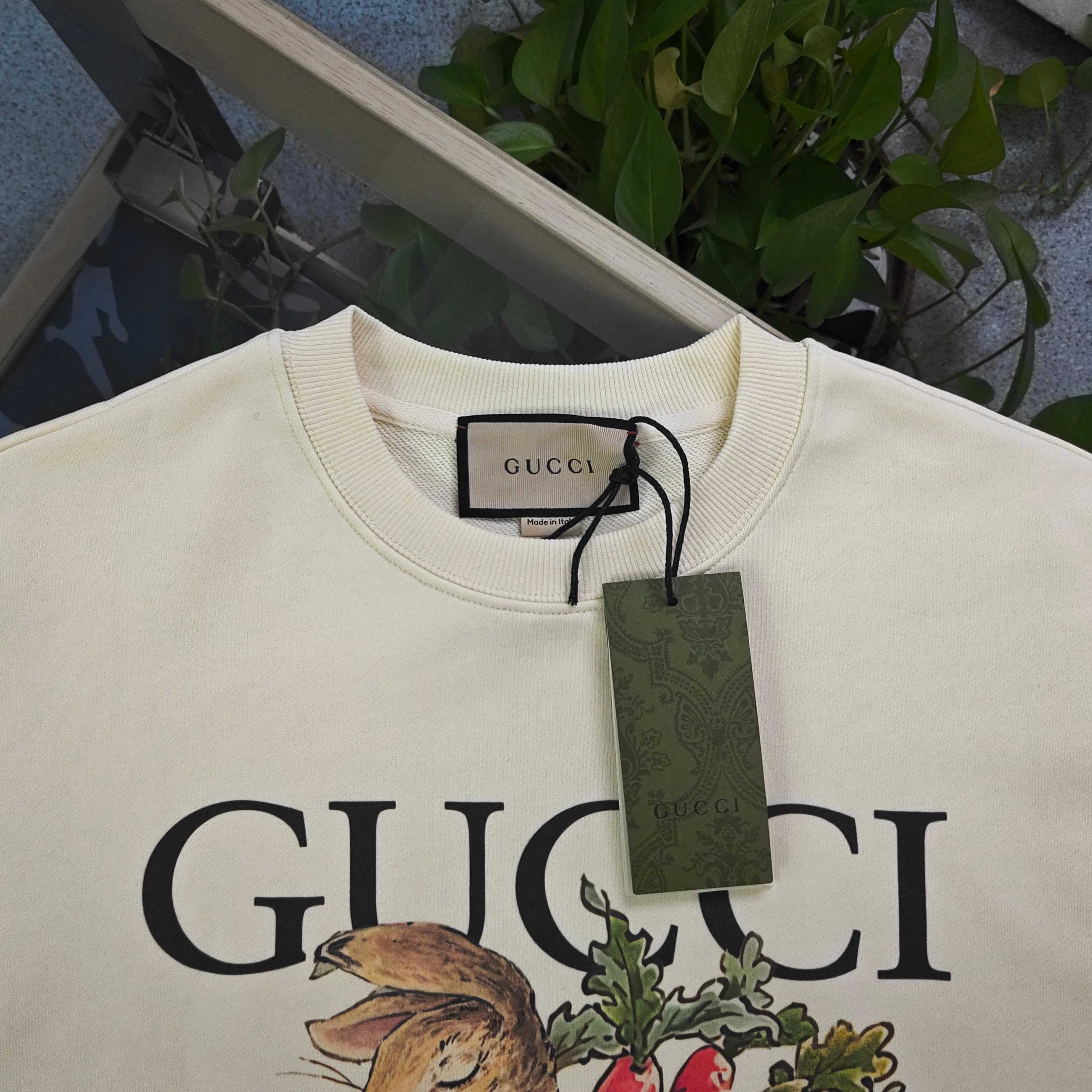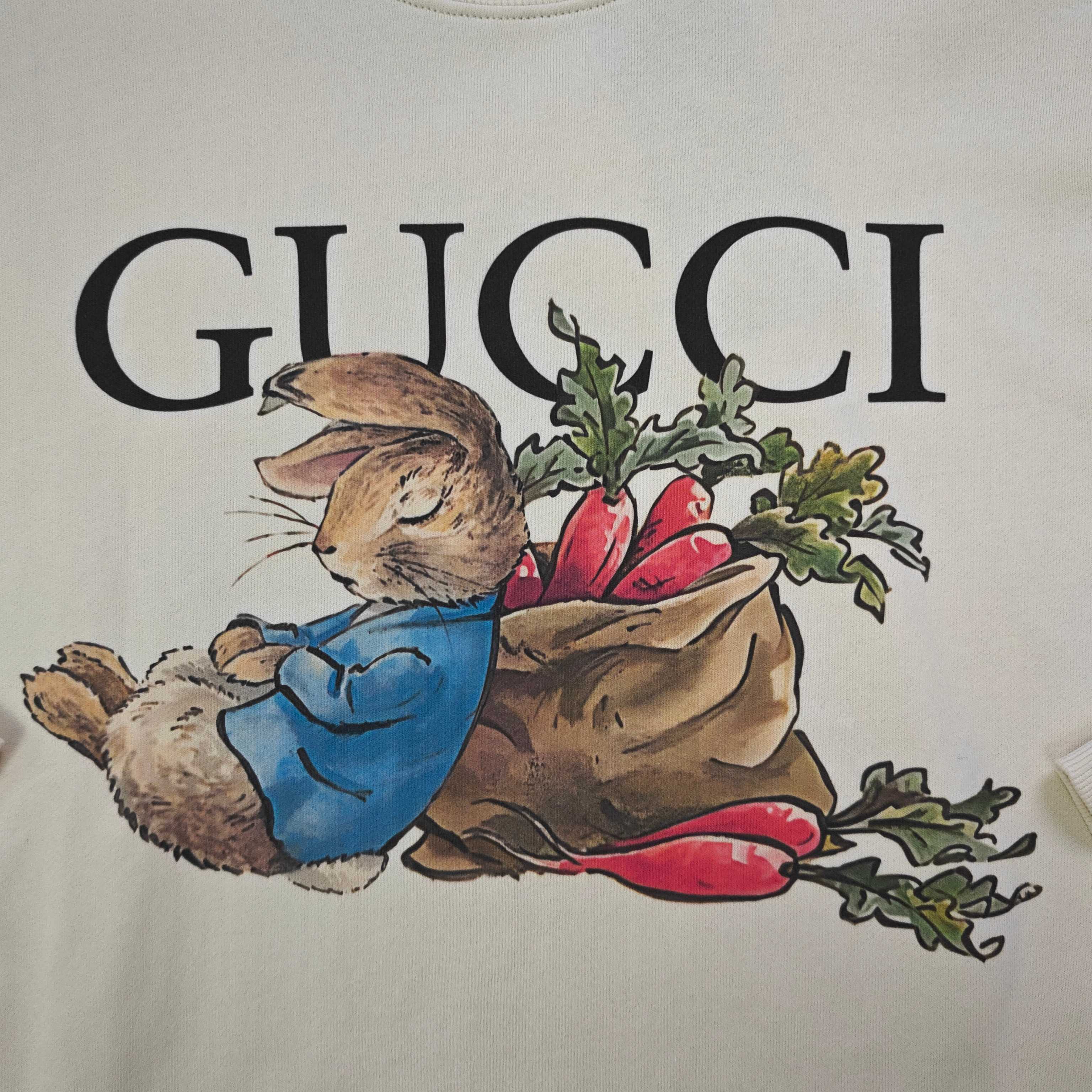 2025秋冬新款Gucci古驰胡萝卜兔图案logo印花休闲情侣圆领卫衣 380g大毛圈面料 厚实亲肤且挺括 秋冬穿着保暖性绝佳 给你满满穿搭安全感 奶油色衣身之上 GUCCI标识与胡萝卜 萌兔图案巧妙融合 甜趣又具品牌辨识度 圆领设计简约大气 宽松版型适配各类身形