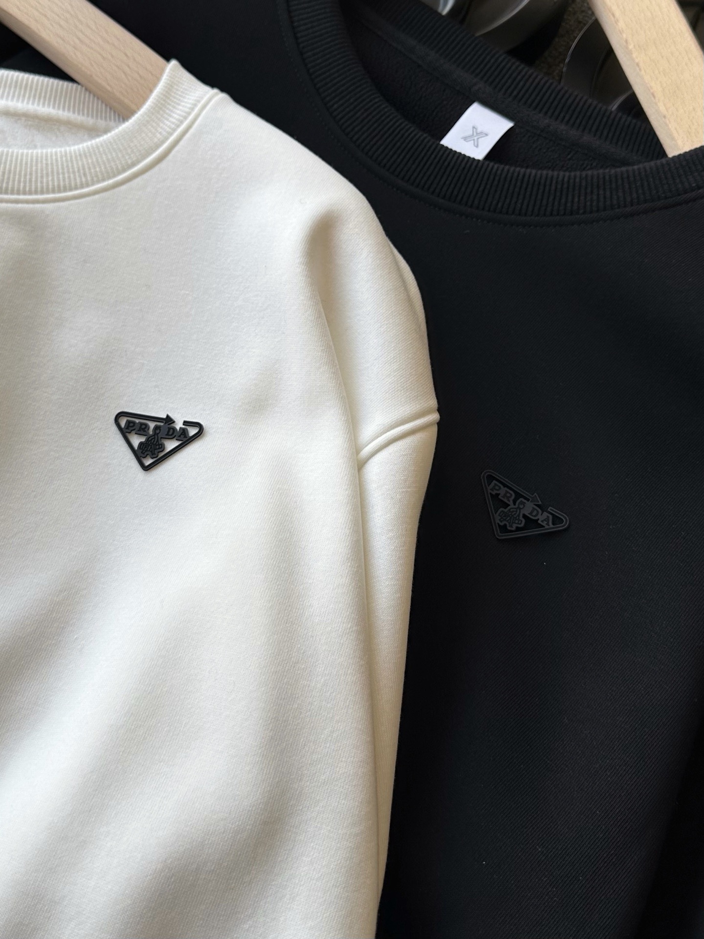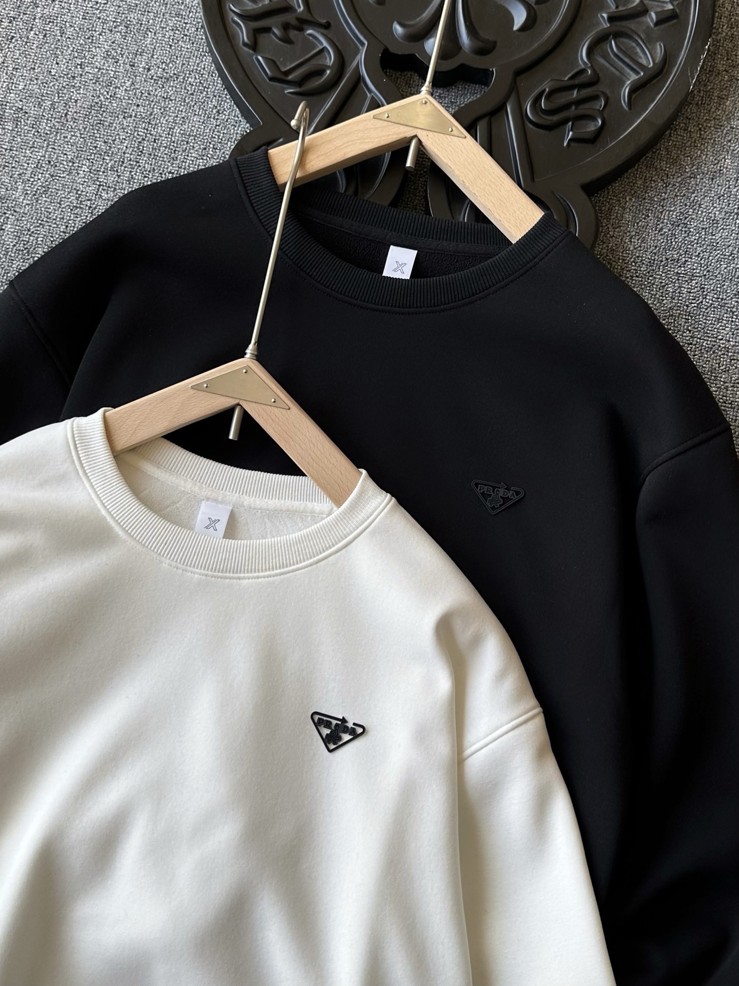 细节细节再细节 Prada家商场新品公文包系列加绒圆领卫衣 胸前3D立体发泡工艺普拉达倒三角小仆人公文包系列标识 表层做了激光烧花细节 细品十分精致 所有拼接处全部走了压线 这样上身具有很好的整体质感 同色系配套罗纹 细节之处非常讲究