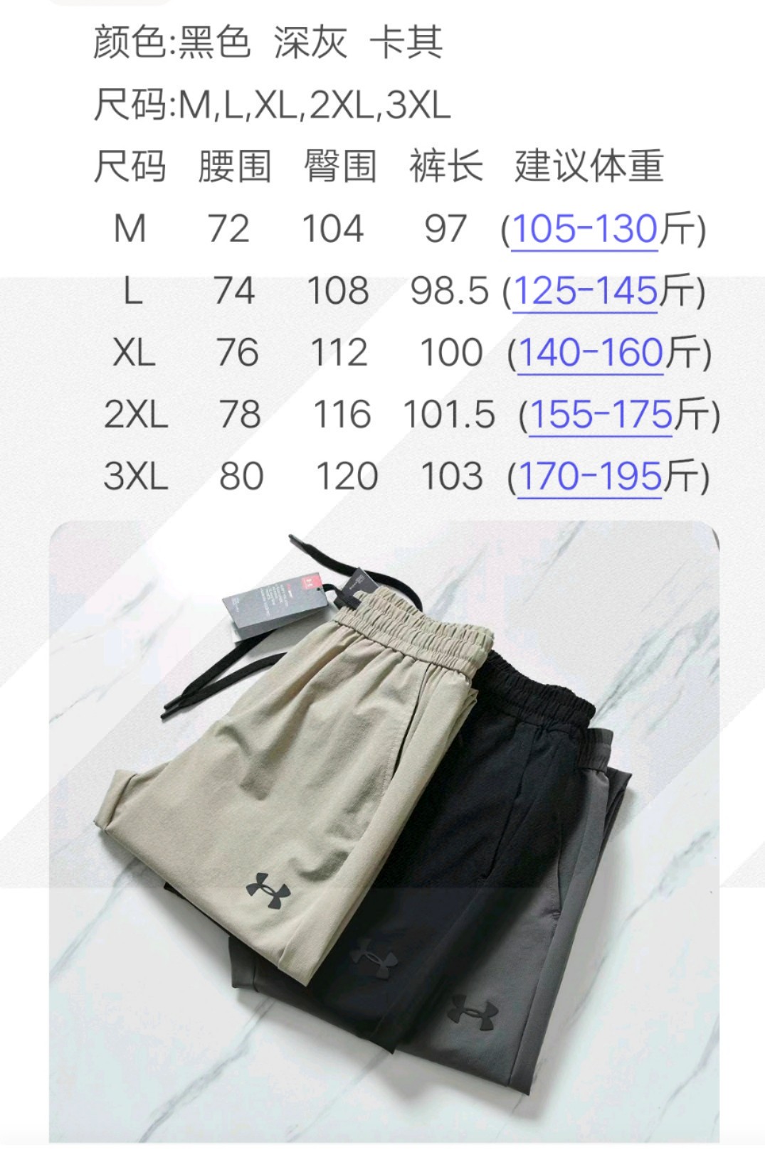 尺码 M L XL 2XL 3XL 黑色 卡其 深灰