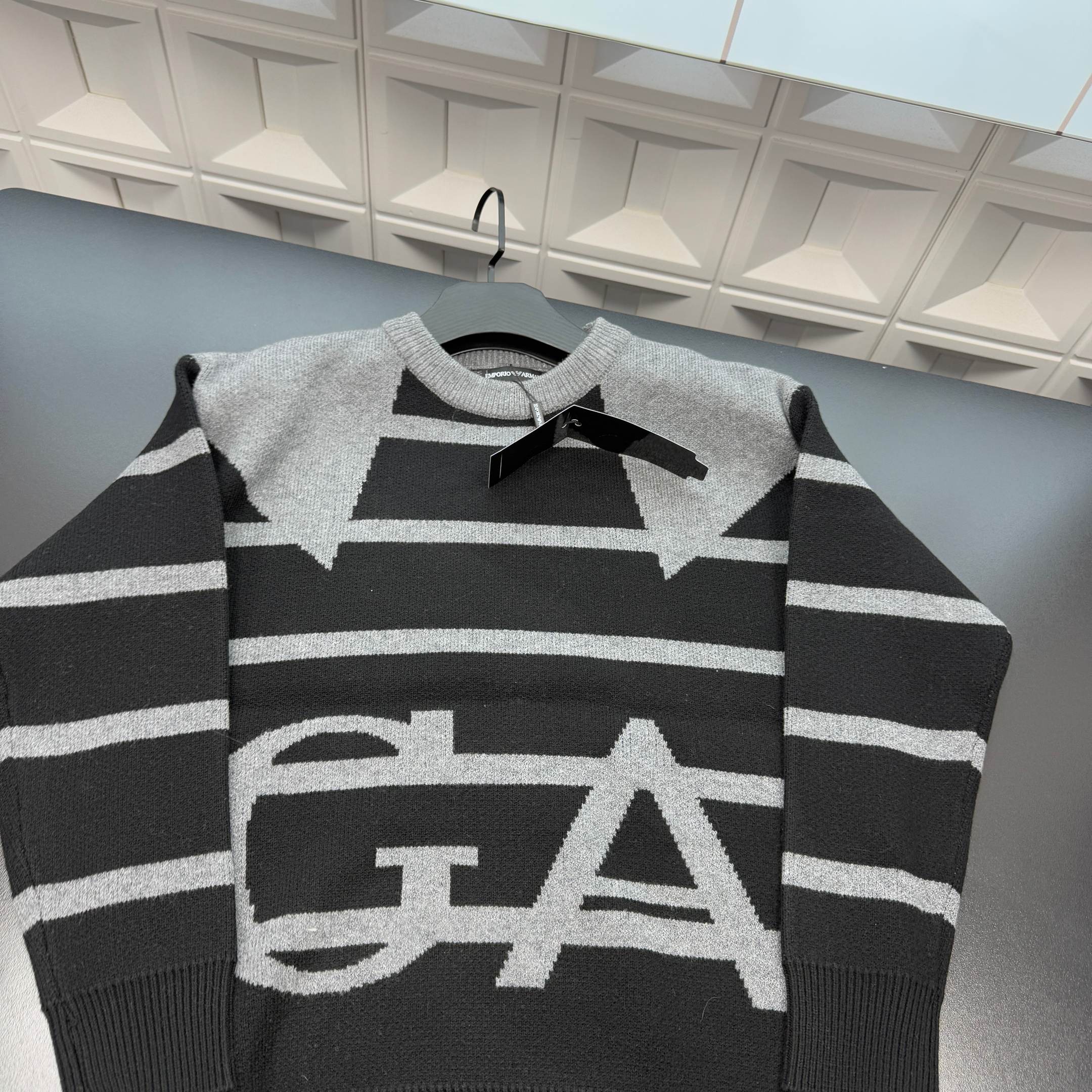 冬季热销爆款网红博主推荐款Ea7阿玛尼针织毛衣 满印条纹撞色 大字母Logo 三标齐全官网一致 放大看细节原相机实物拍摄 颜色 黑色 尺码 L 4xl L 80 105斤 XL 105 120斤 2XL 120 140斤 3XL 140 160斤 4XL 160 180斤
