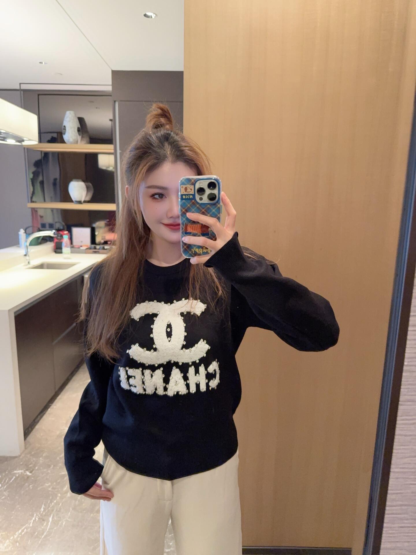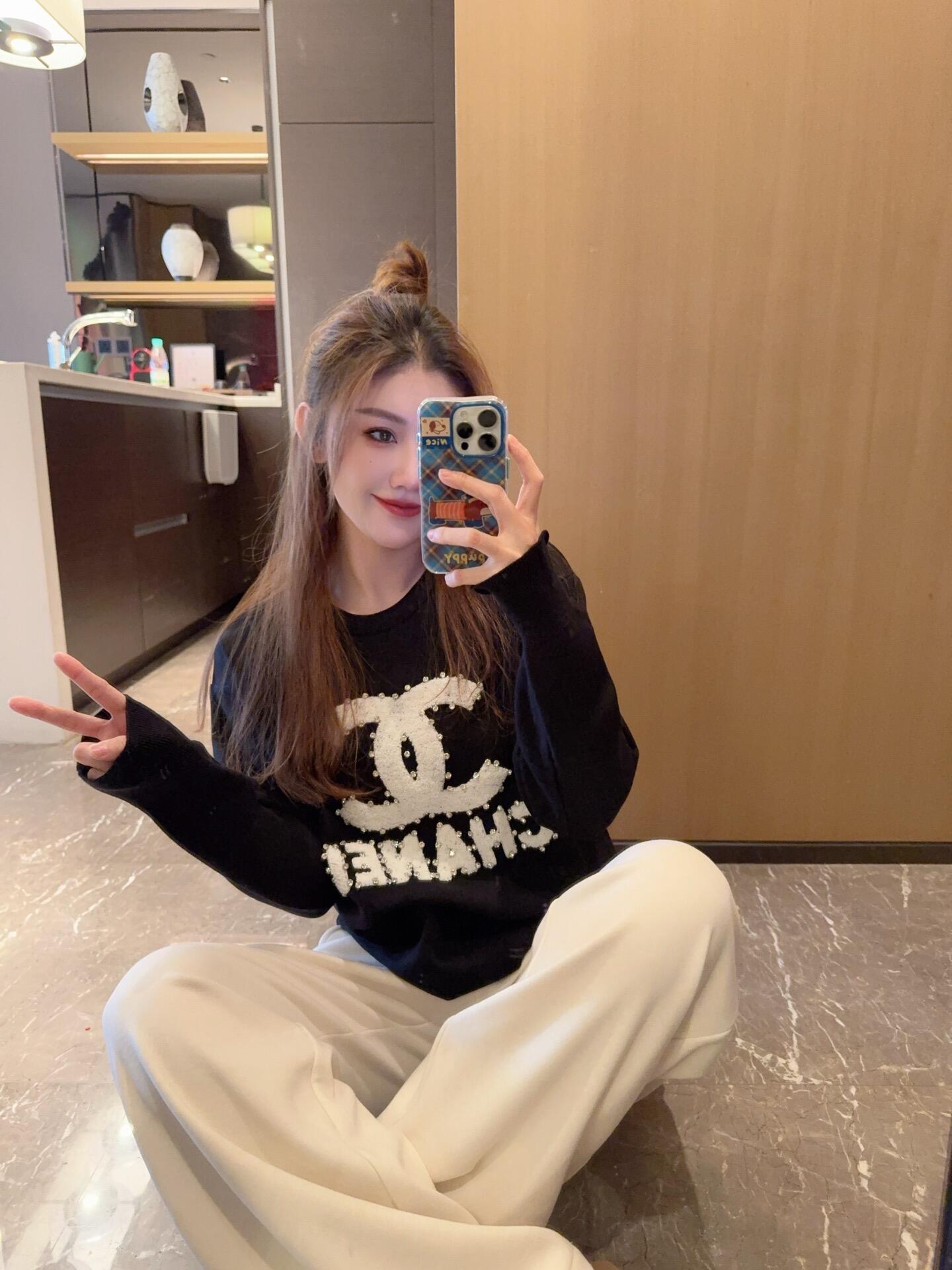 拿货 胸围115衣长65 Chanel香奈儿镶钻毛衣 白月光你来当 整个看起来就干干净净的 穿上感觉就是读书时期很多男生会暗恋的学姐 主要版型很好 特别显瘦 Chanel秋冬毛衣 白月光穿搭 今天穿什么香