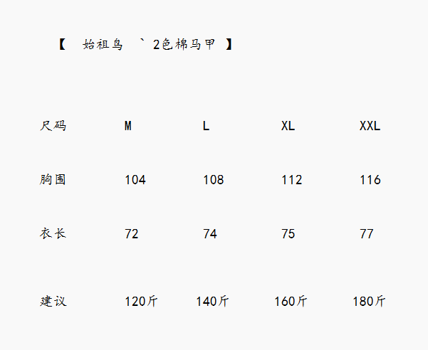 尺码 M XXL