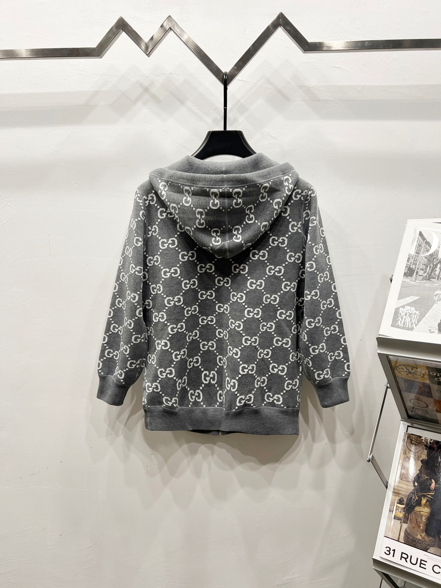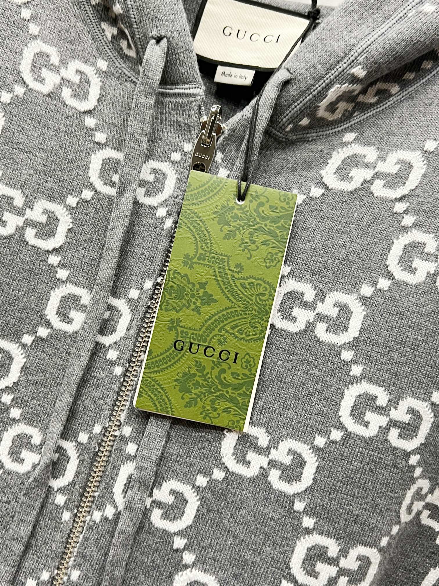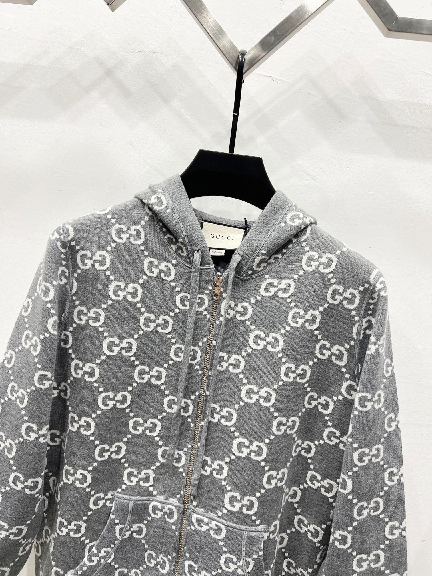 Gucci古驰秋冬新款潮牌满绣双面穿连帽提花羊毛针织衫外套毛衣 男女同款