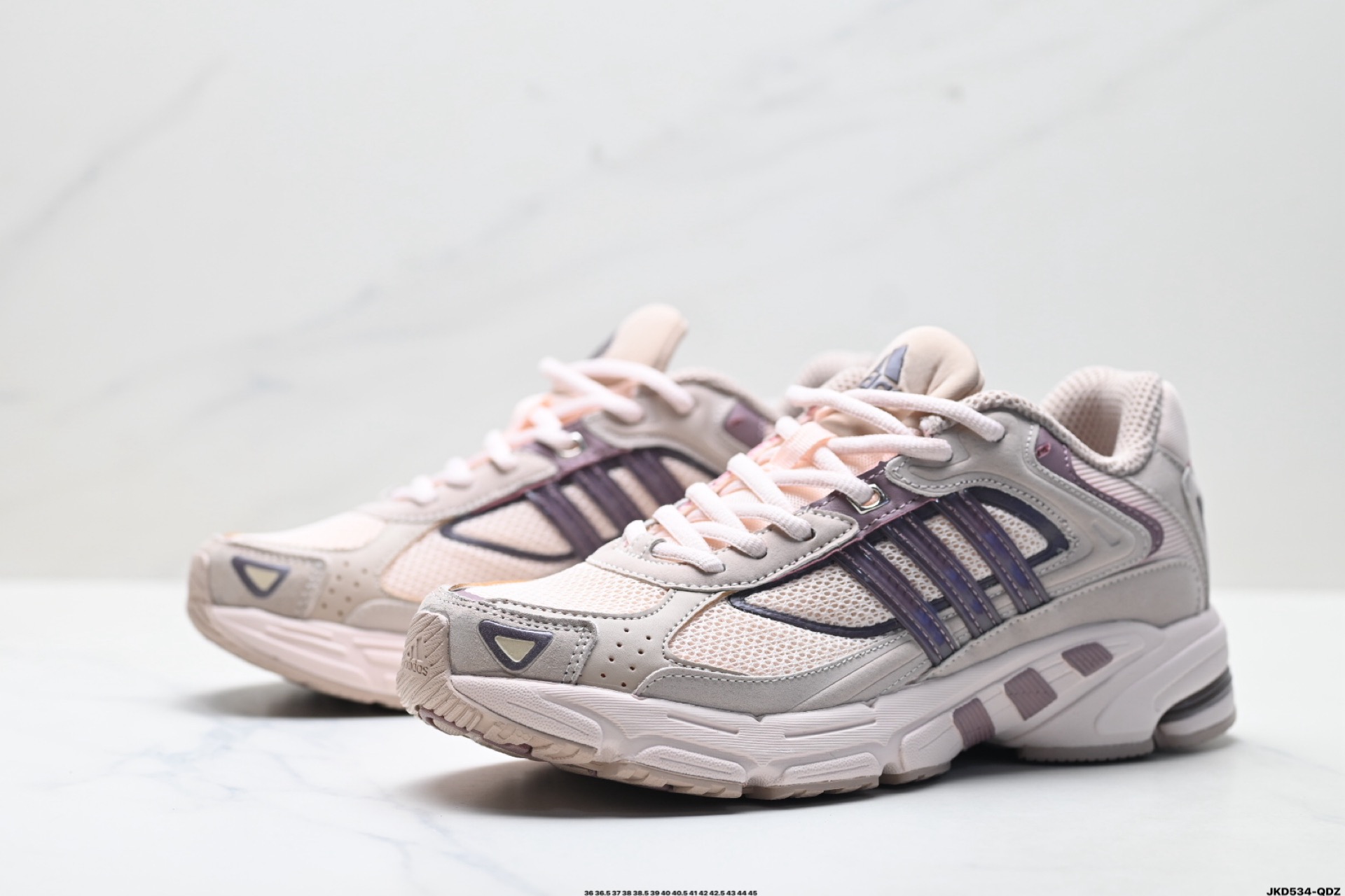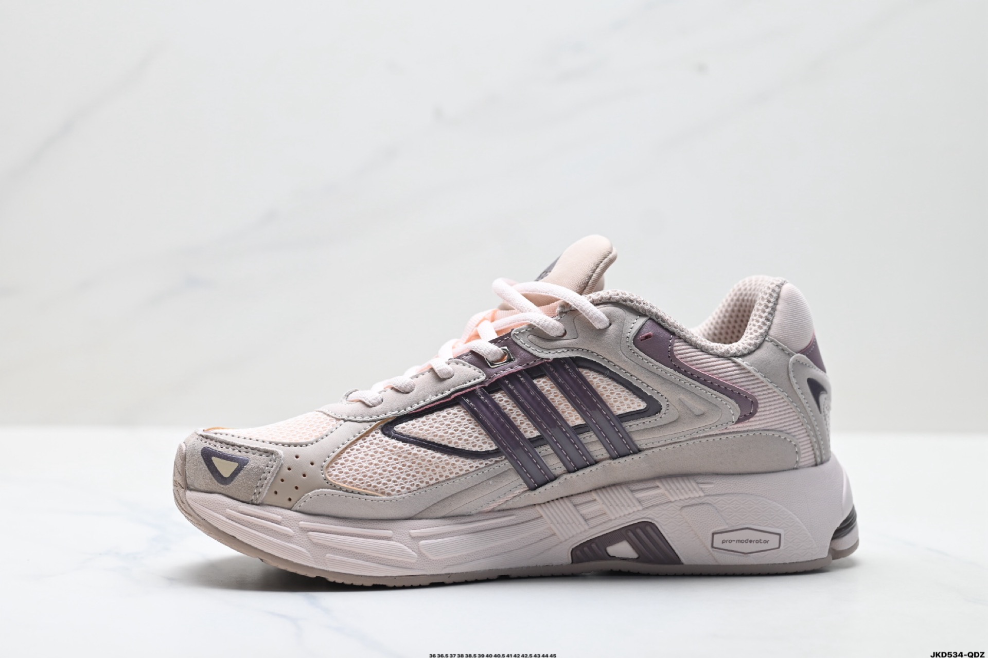 鞋身采用大面积的麂皮和网布材质 复古感拉满 中底采用阿迪达斯经典的adiprene 后掌添加新的Pro miderotor科技 脚感回弹力十足
