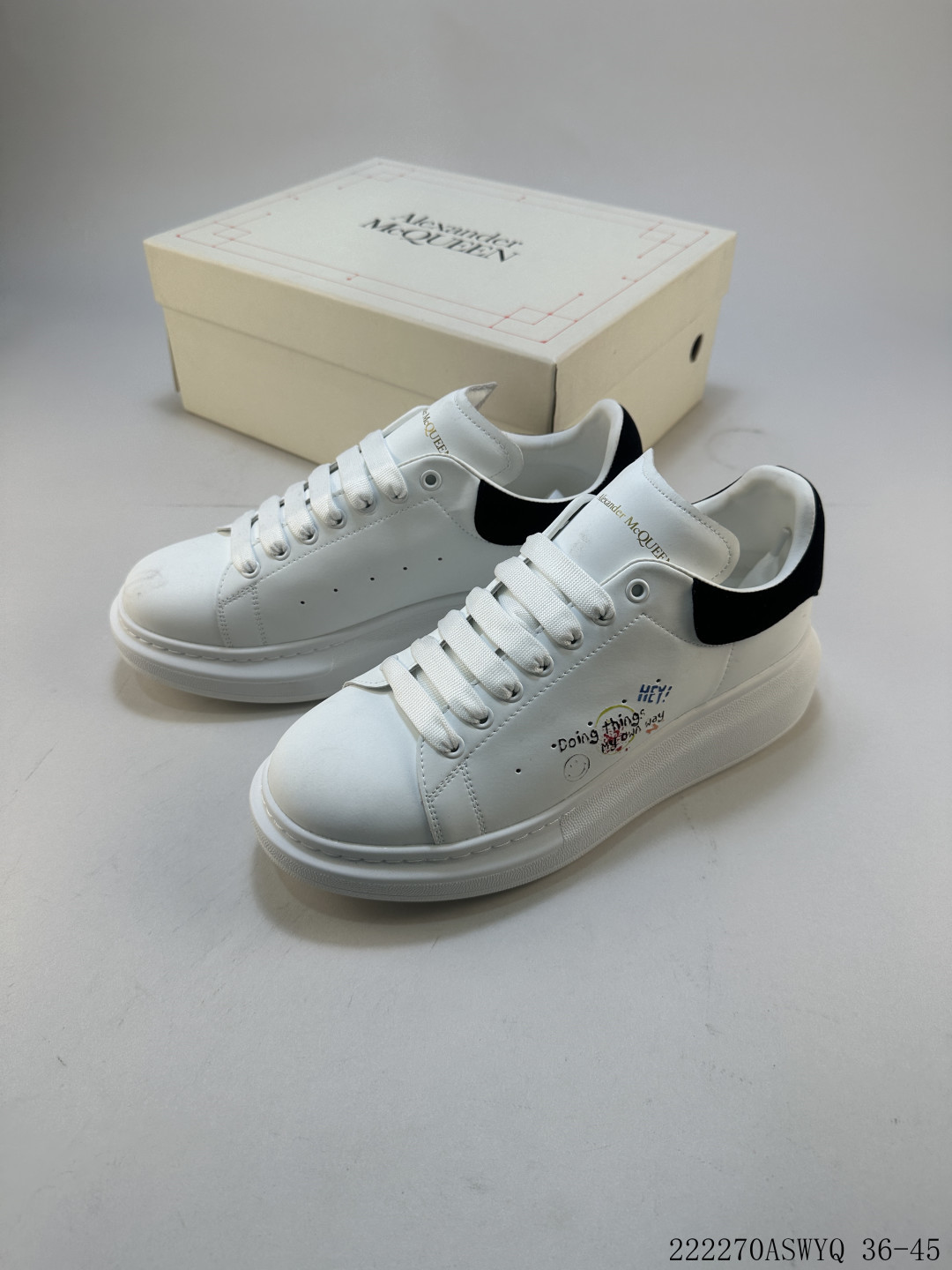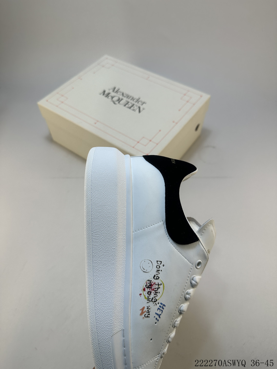 AlexanderMcQueen 亚历山大 麦昆MCQ 情侣款运动小白鞋厚底增高闪尾光滑牛皮平底鞋休闲鞋 时尚男女板鞋潮运动鞋 涂鸦 222270ASWYQ 36 45