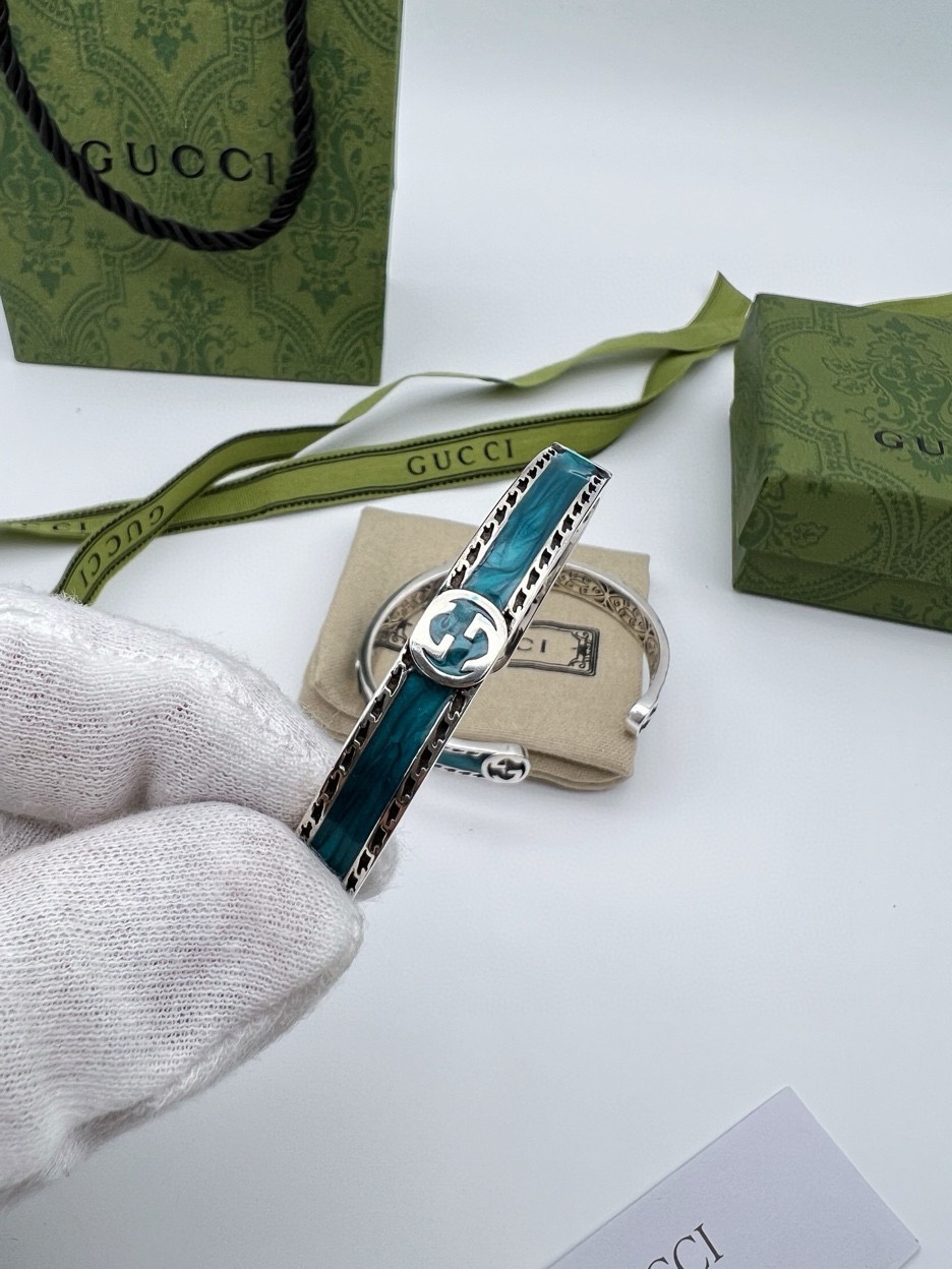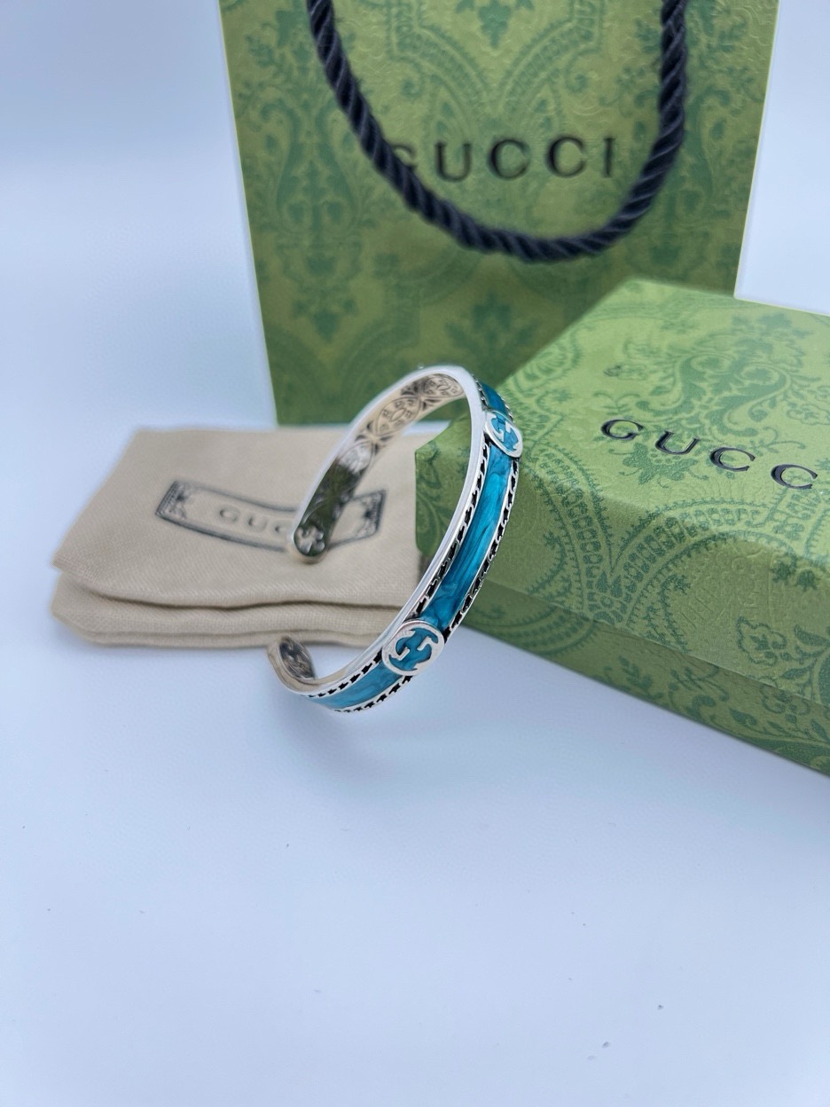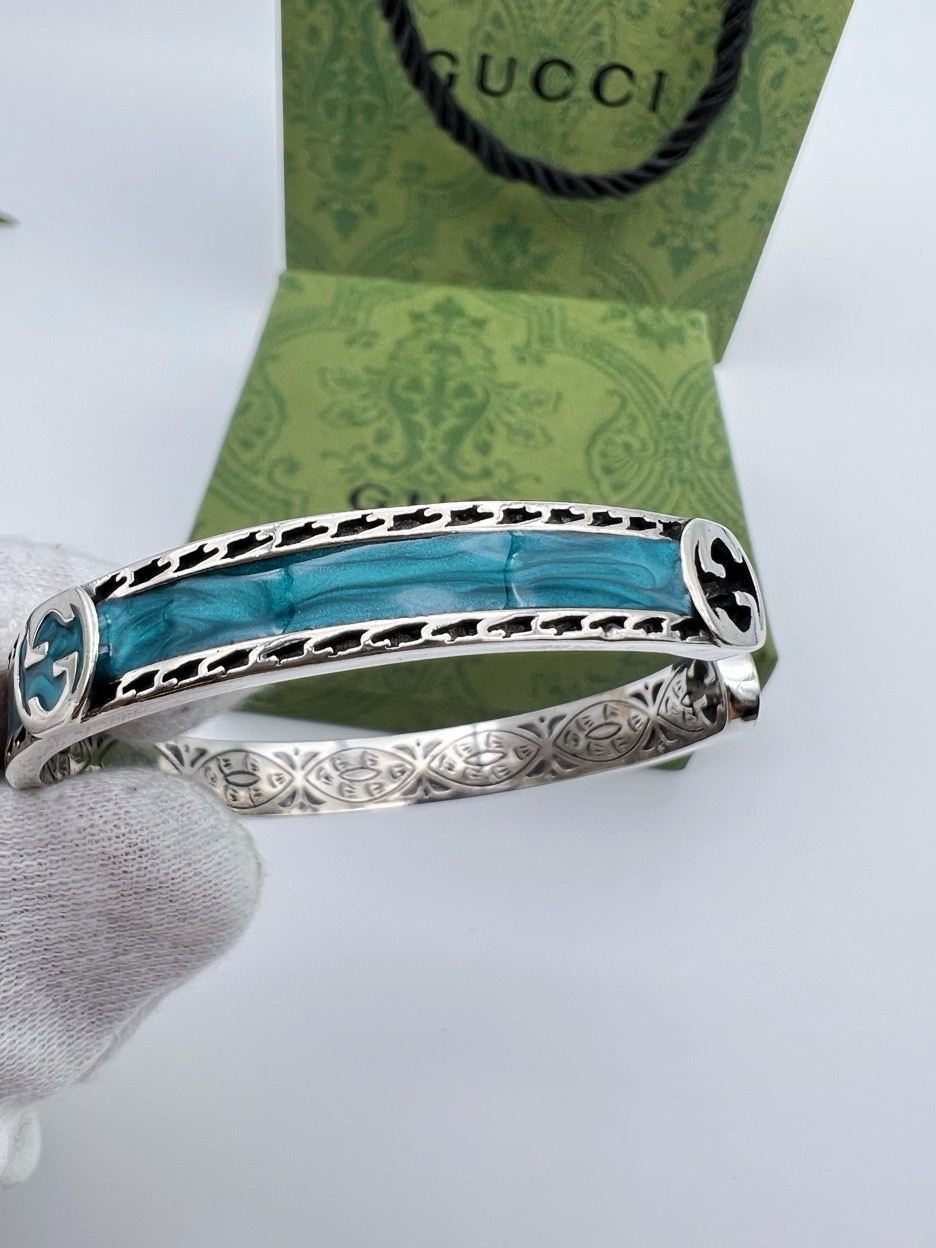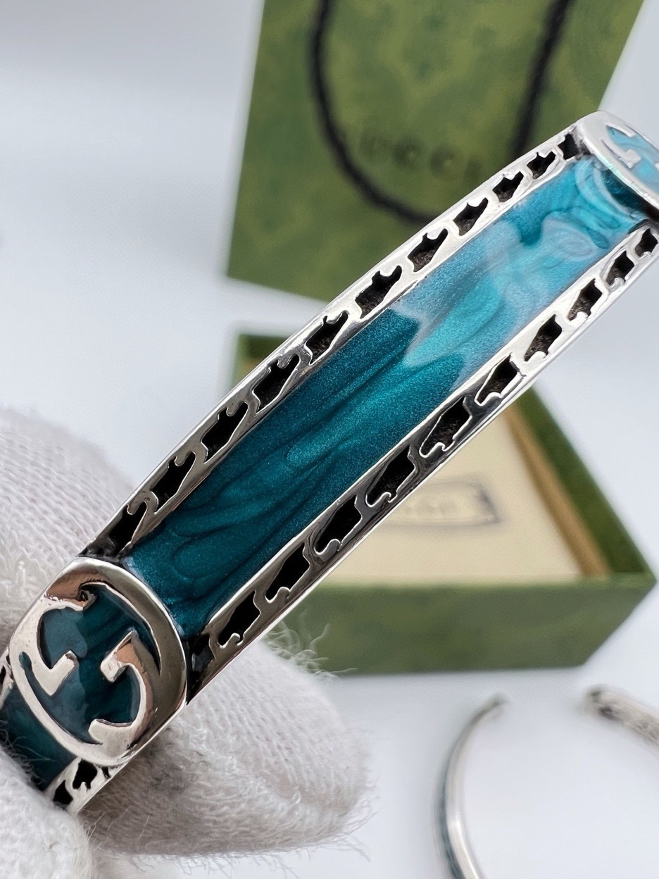 85353944 - Gucci古驰蓝色开口手镯 泰银版本 别具一格的质感和色泽 547164
